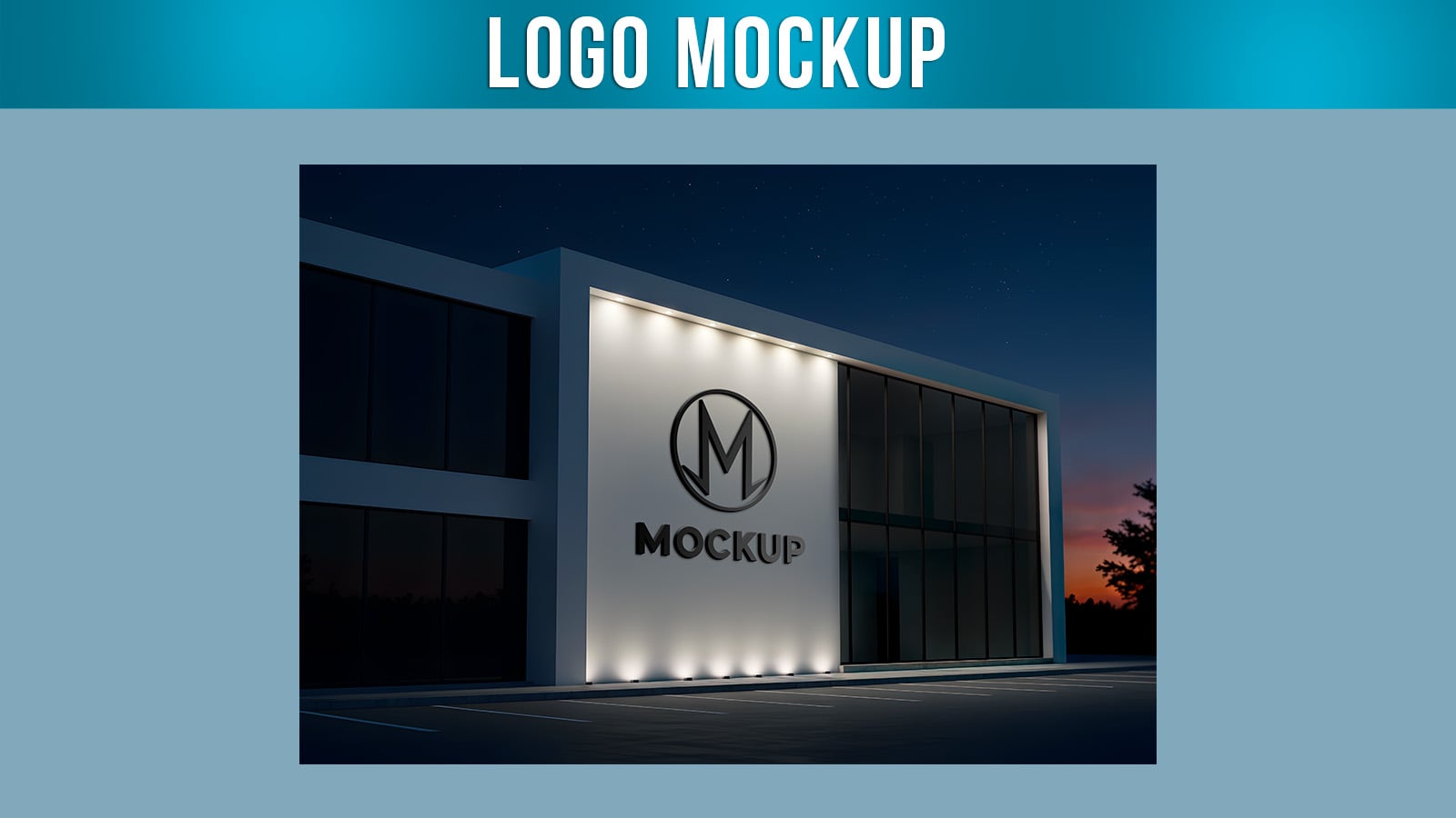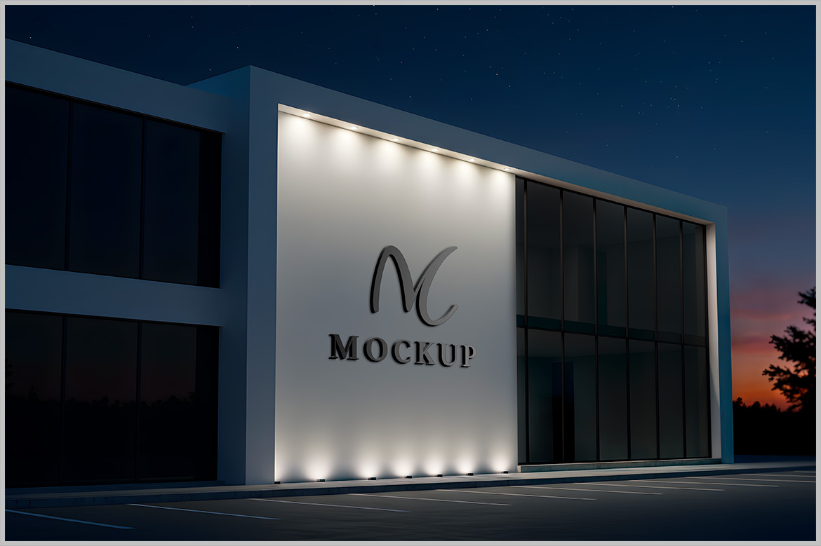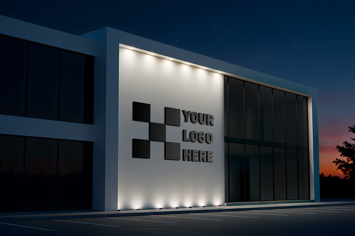 Logo Mockup Office Building lets you quickly apply designs using layers, masks, and smart objects.