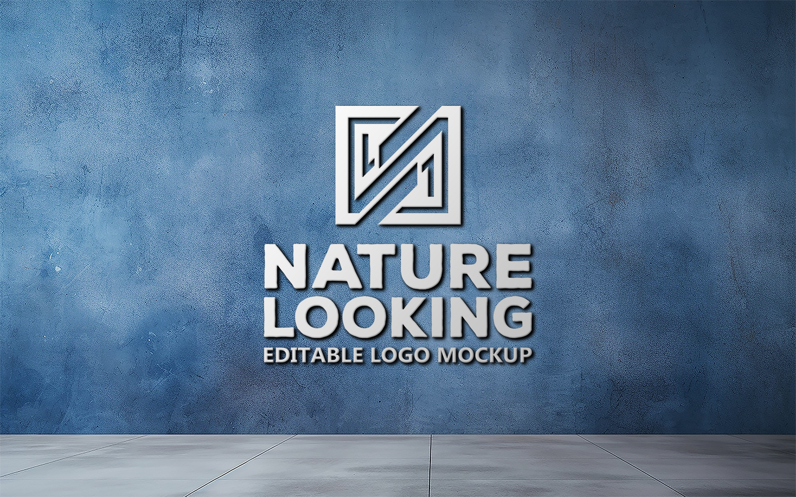 Logo mockup_blue wall logo mockup_sign logo mockup_interior wall mockup Product Mockup