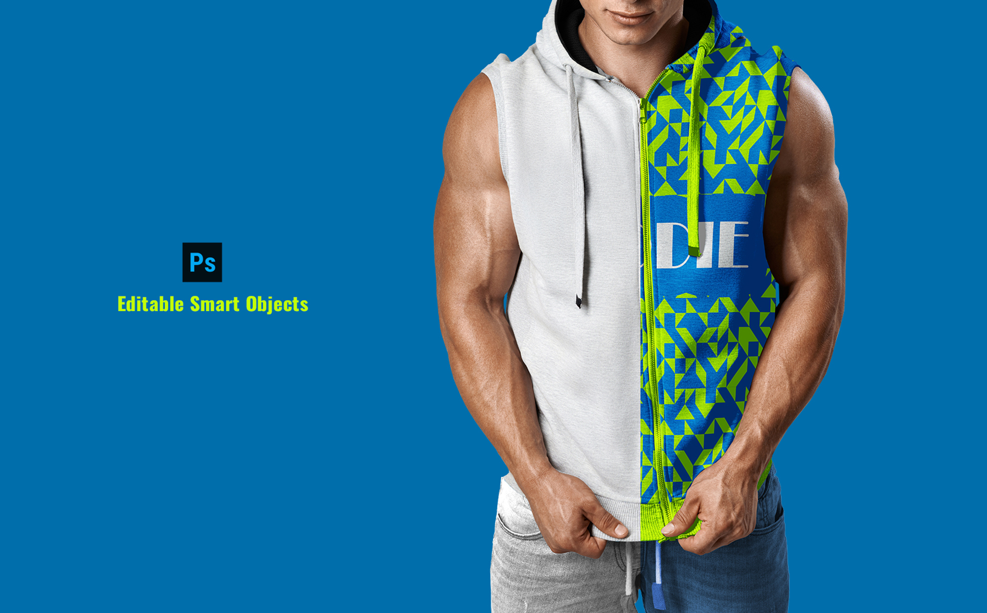 Introducing our Men Sleeveless Hoodie Mockup – a dynamic and versatile solution designed to elevate your apparel design presentations to the next level. This meticulously crafted mockup provides a realistic and high-quality canvas for showcasing your sleeveless hoodie designs with precision and style.