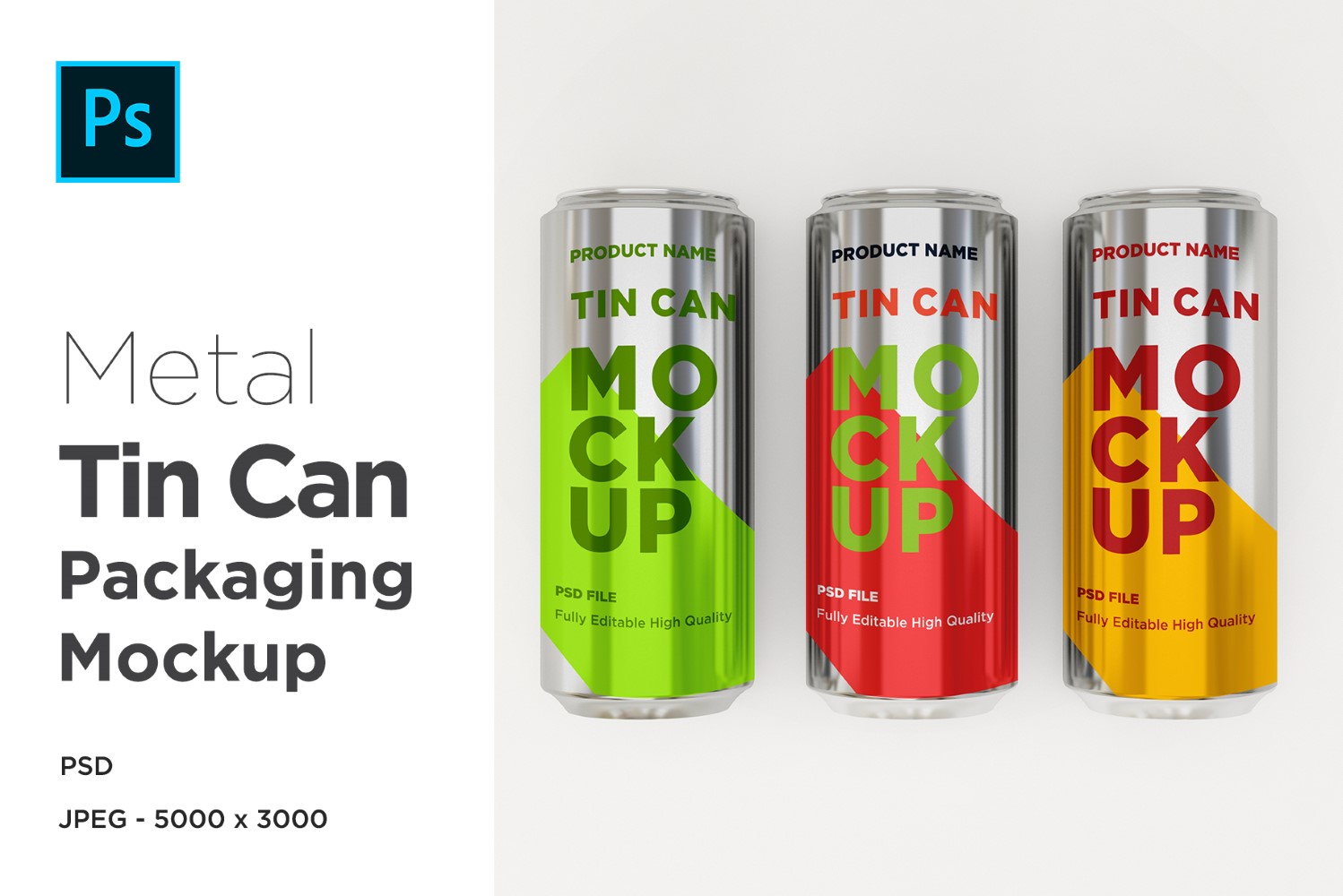 Display your design in a more efficient way on this perfect Glossy Metal Tin Can Mockup for packaging designs for tea, coffee, biscuit, candy, chocolate energy drinks, juice, soda, lemonade, juice, cola, and other beverages and etc.