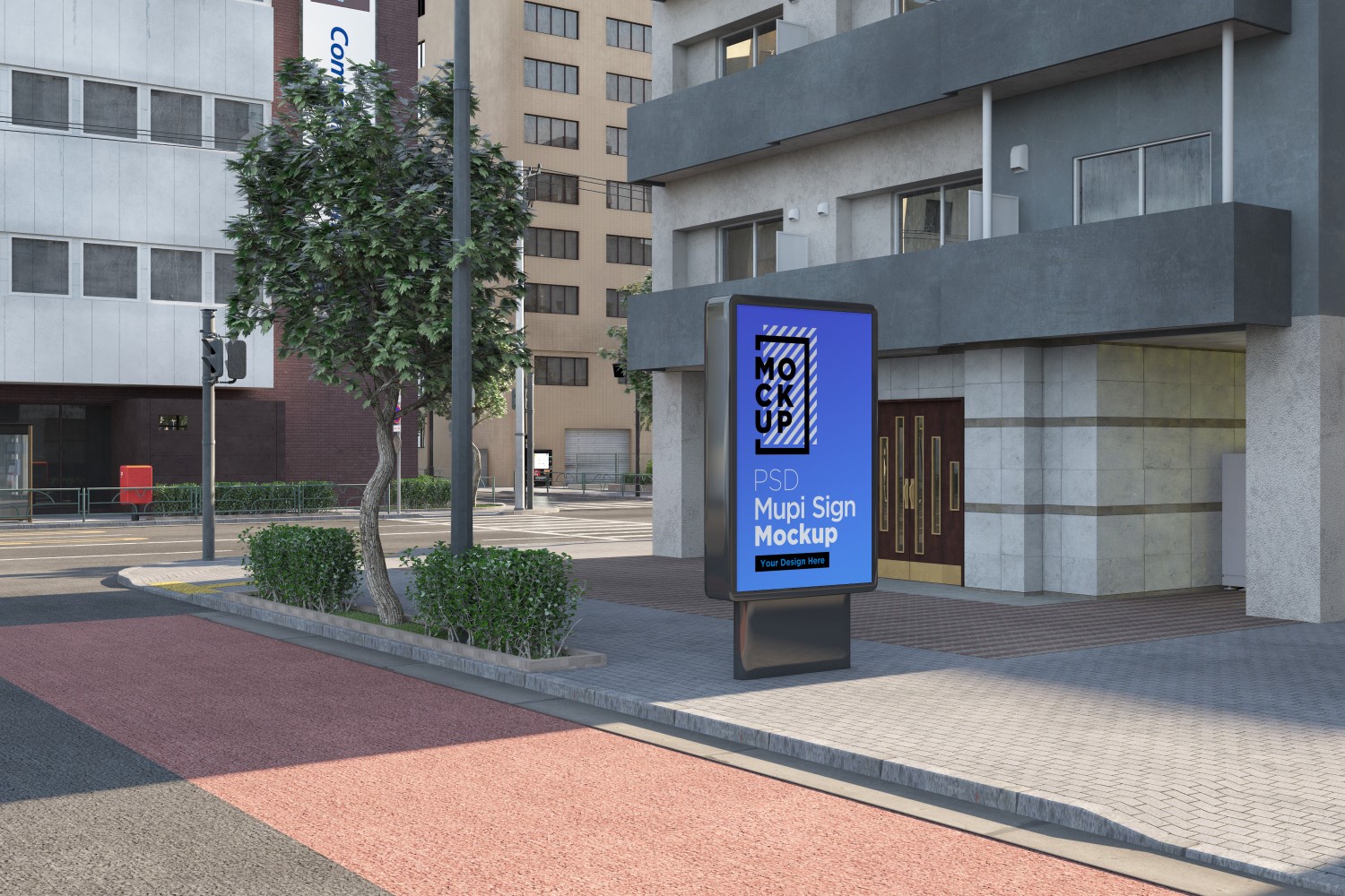 Mupi Signage Advertising Billboard Mockups to showcase your advertisement poster in a 3D realistic rendering appearance. This mockup is a fully layered PSD. It works perfect for your advertisement to preview or present your projects to your clients.