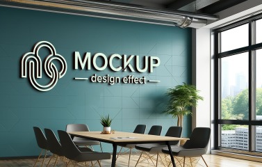 Office Logo Mockup 3d Sign on Black Wall in Meeting Room Psd