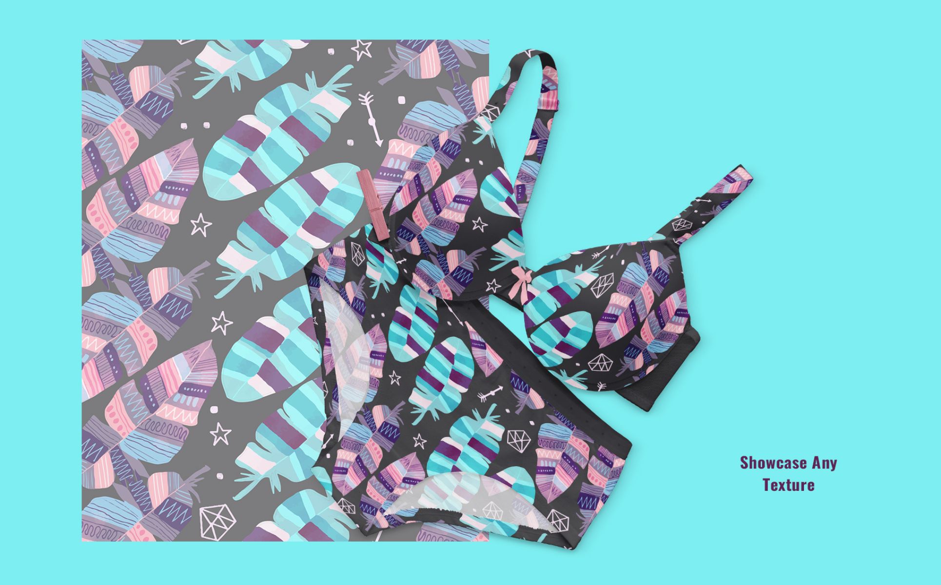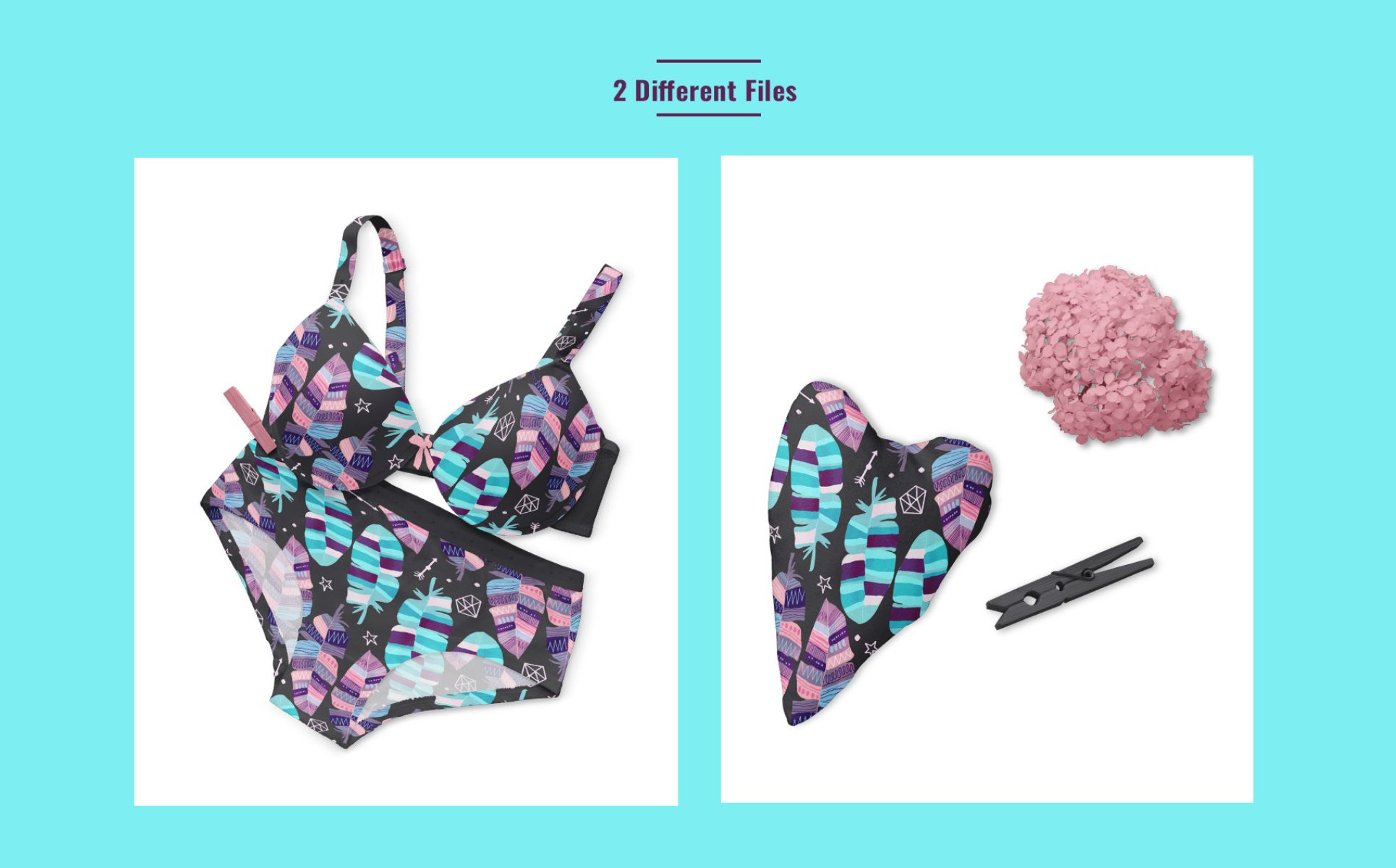 This organic cotton lingerie set mockup can help you visualize what these sets might look like with various pattern designs. Whether you’re creating a pattern design for your client or looking to promote your creation, This cotton bathing suit set mockup can be a great way to explore different styles and experiment. An organic cotton lingerie set mockup is a digital representation of a lingerie set made from organic cotton materials. It includes a top and bottom piece and also features additional accessories.