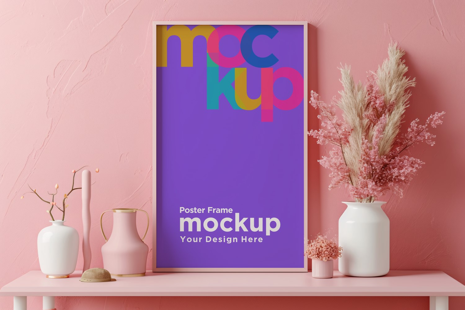 Poster Frame Mockup with Vases and Decorative Items 27 Product Mockup