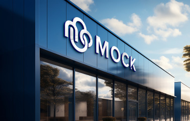 Realistic 3d sign logo mockup on shop front building corporate business front sign logo mockup