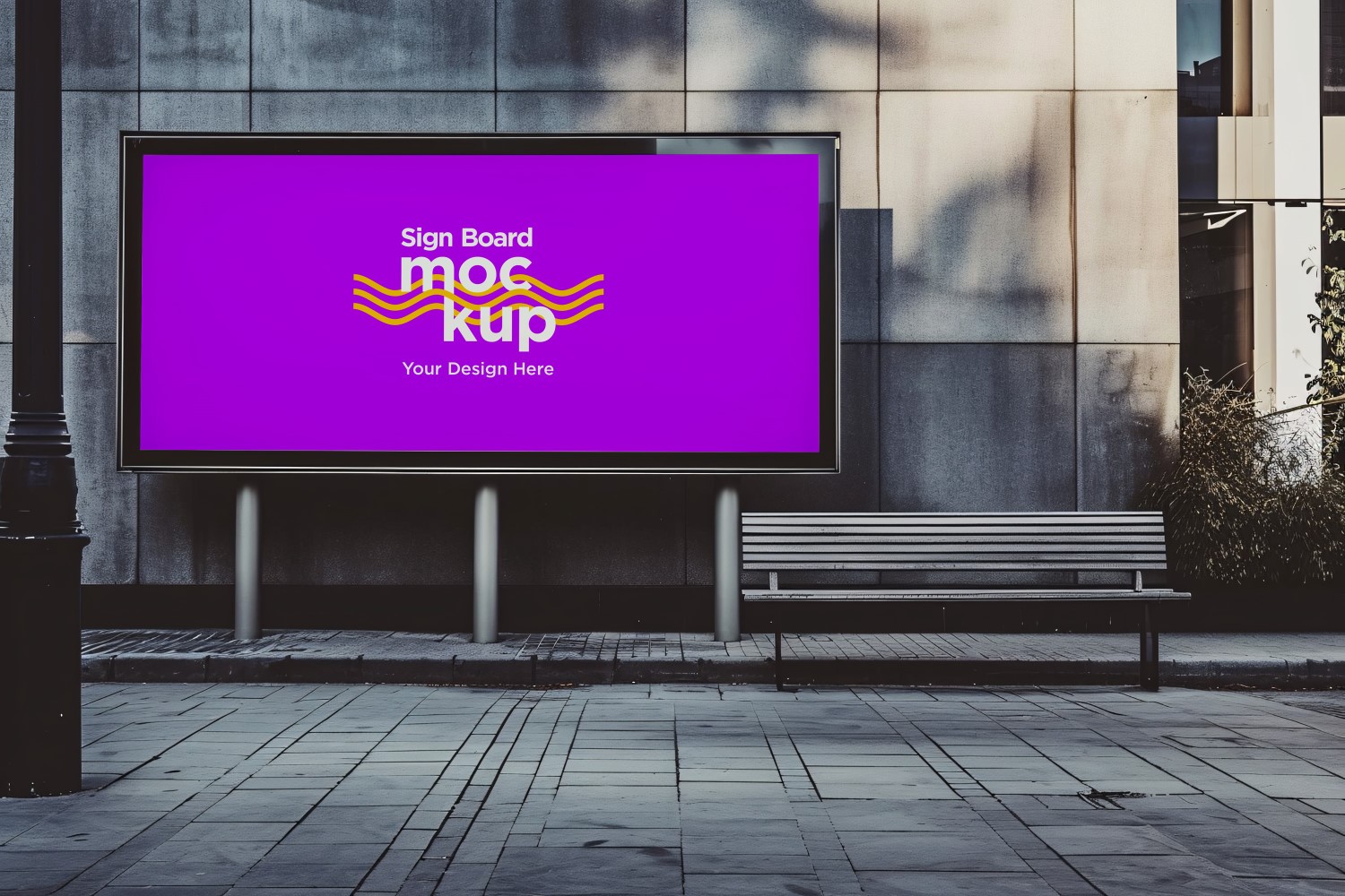 Present your outdoor advertising design with the captivating Billboard Mockup—a large roadside signboard mounted on a building. This PSD mockup, equipped with Smart Object layers, facilitates effortless editing for showcasing marketing campaigns, product displays, and advertisements. Elevate your presentations and captivate audiences with this realistic and easily customizable billboard mockup.