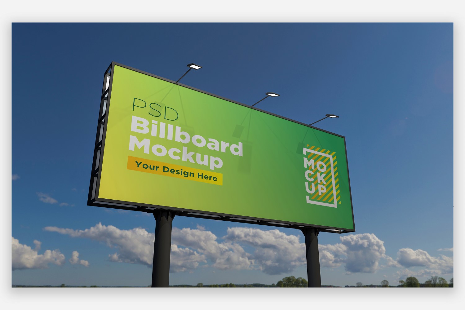 Outdoor advertising billboard mockup with which you can present your design. This mock-up is easy to edit via Smart Object and it’s ideal for demonstration of your products, marketing campaigns and advertisements. Mockup is PSD file which consists of background layer and easily edited Smart object layer.