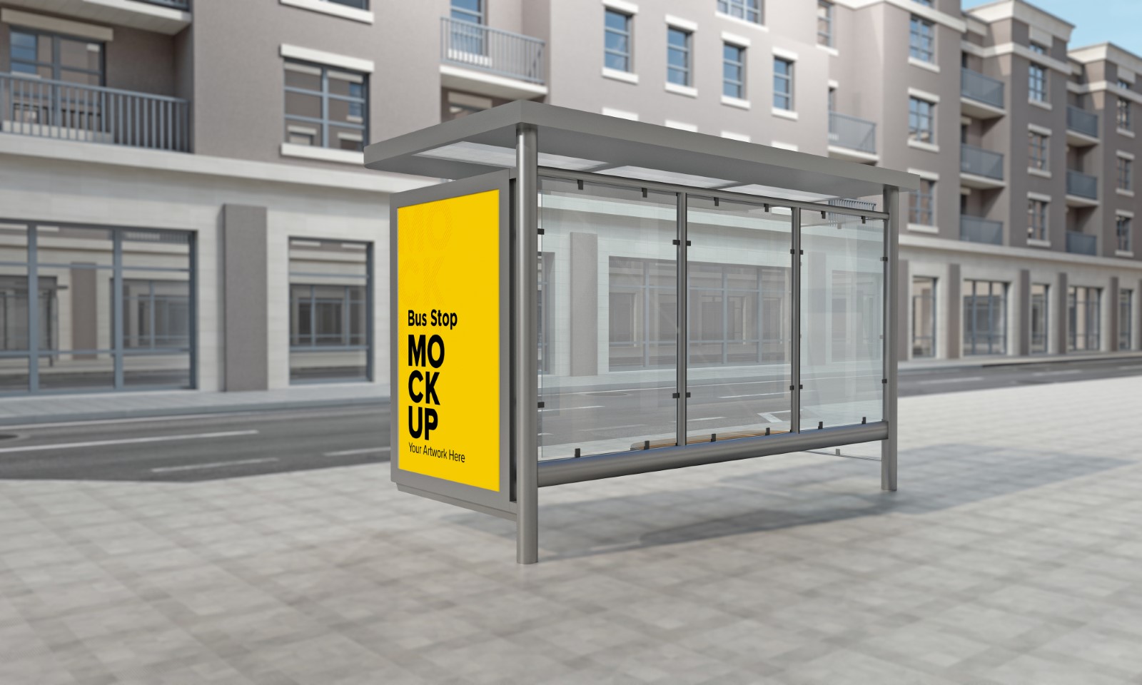 Side View City Bus Shelter Outdoor Advertising Sign mockup Template Product Mockup