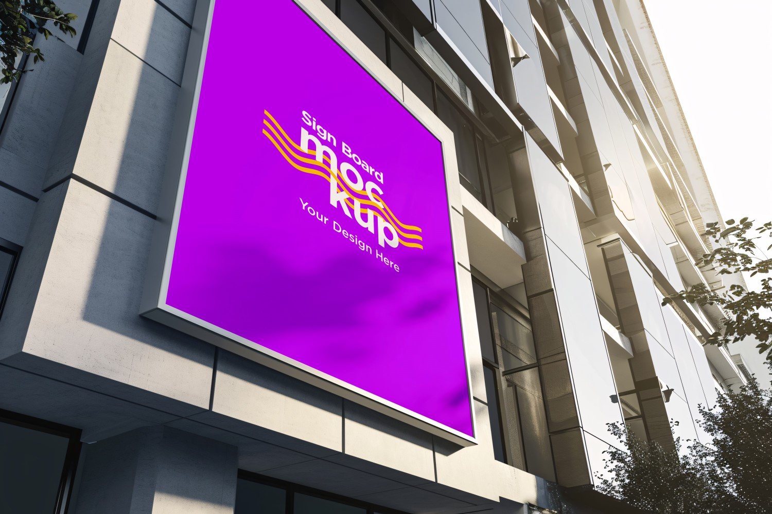 Sign Board Mockup on Building Wall 88 Product Mockup