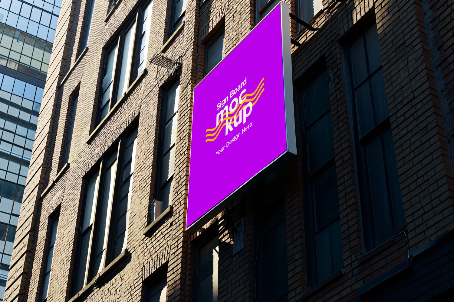 Sign Board Mockup on Building Wall 146 Product Mockup