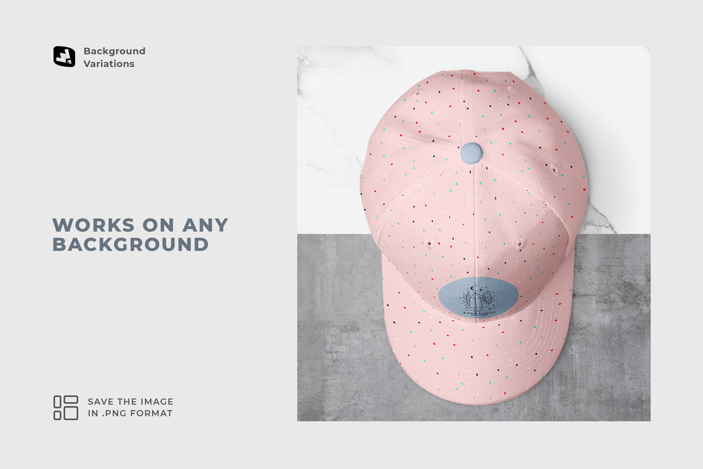 The snapback baseball cap set mockup PSD files require Photoshop CC or above to open. These baseball cap mockups are high-resolution. It has a lot of realistic elements and fabric feel to it. This mockup of a snapback baseball cap set can be used on any background.