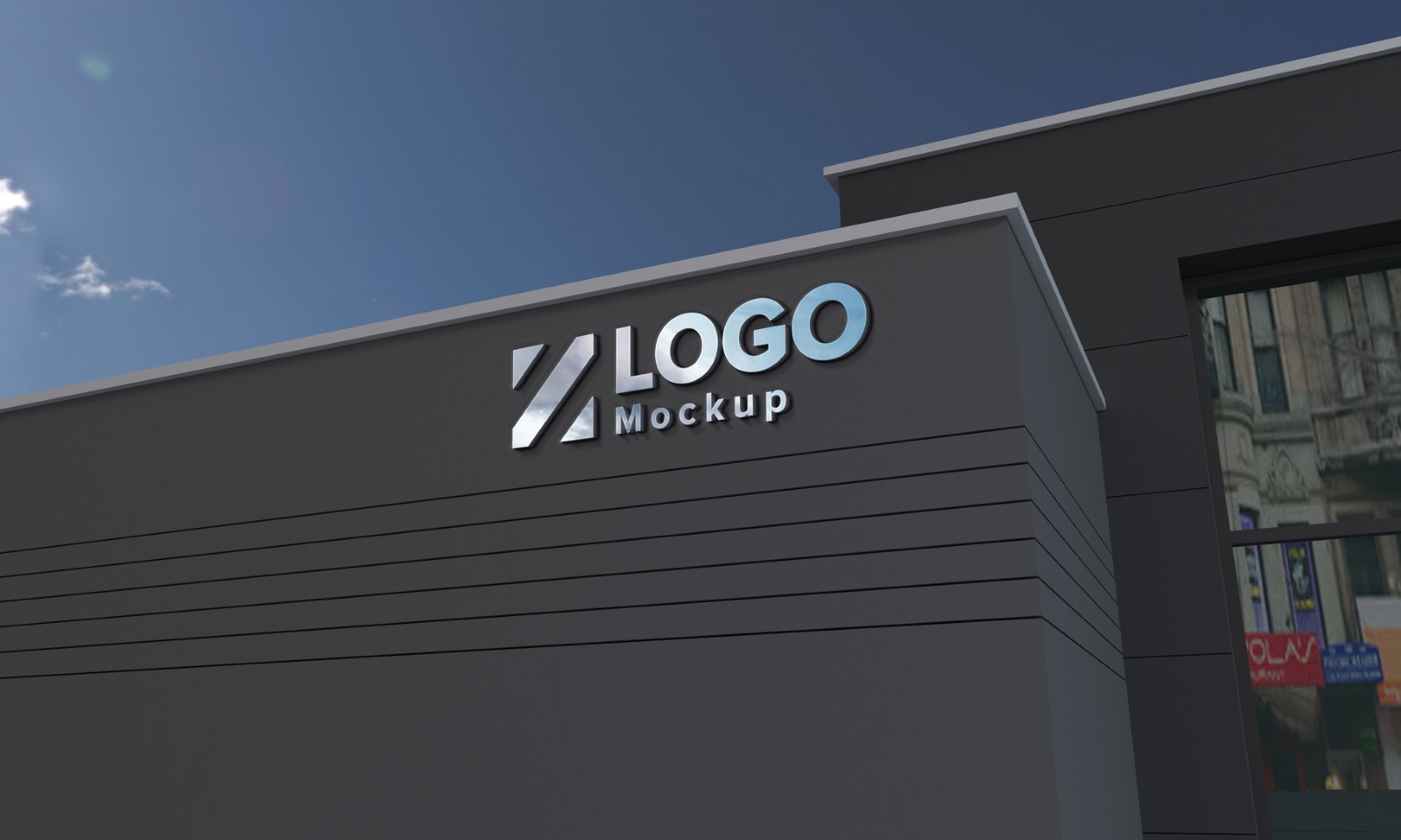 Steel Logo Mockup 3D Sign façade Black Building product mockup Product Mockup