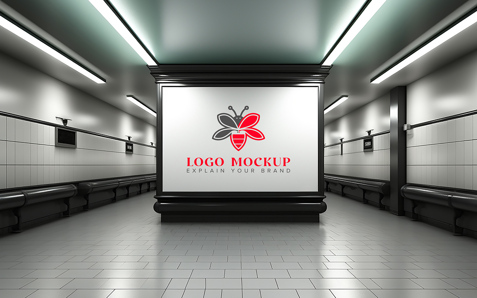 Subway station white board logo mockup or subway outdoor advertising billboard mockup psd Product Mockup