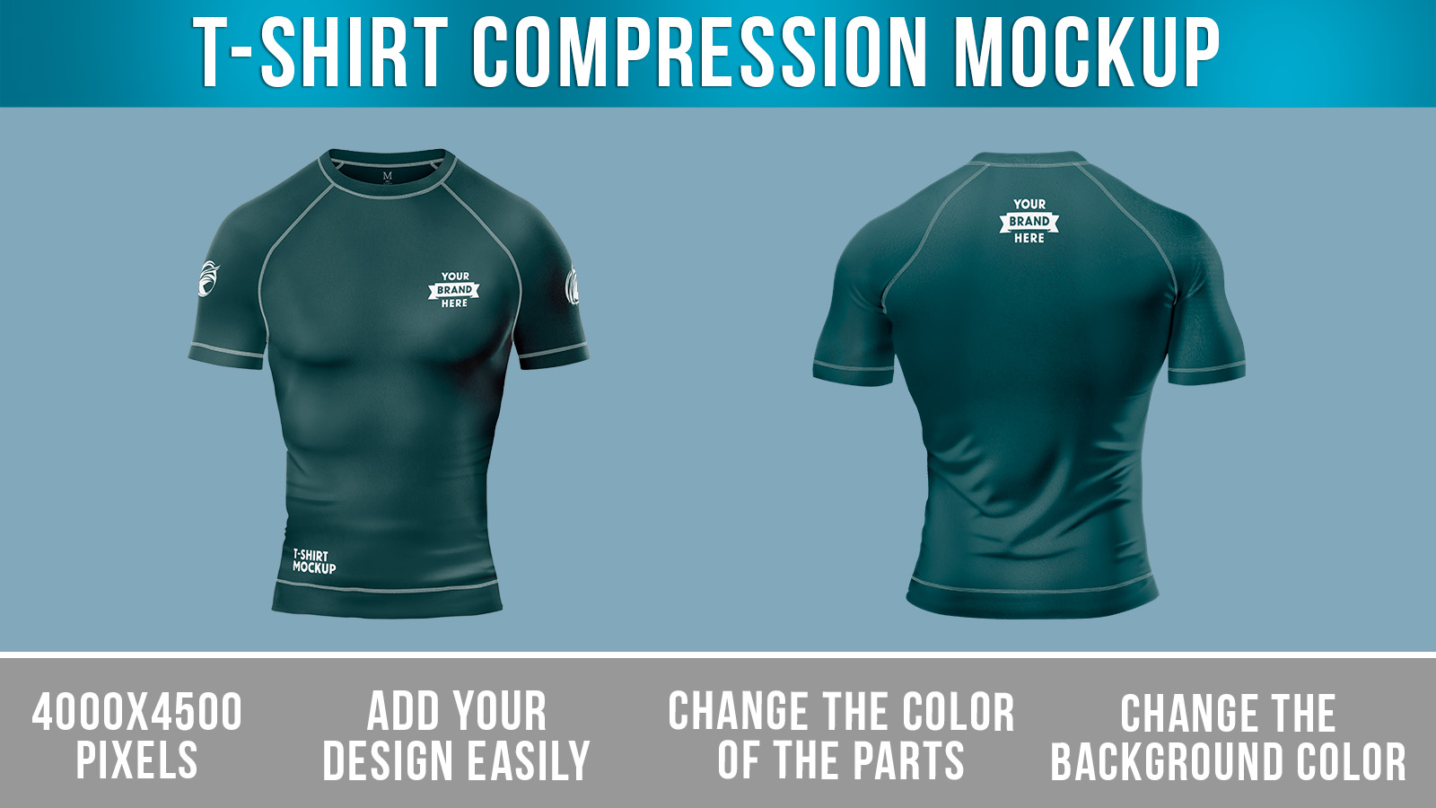 T-Shirt Short Sleeve Compression lets you quickly apply your designs using layers, masks, and smart objects. Just drag and drop into the Smart Object. With high resolution (4000 x 4500 px), this mockup is detailed, easy to use, and perfect for saving time and effort.