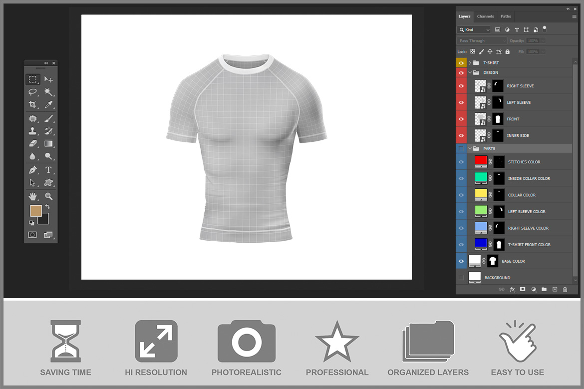 T-Shirt Short Sleeve Compression lets you quickly apply your designs using layers, masks, and smart objects. Just drag and drop into the Smart Object. With high resolution (4000 x 4500 px), this mockup is detailed, easy to use, and perfect for saving time and effort.