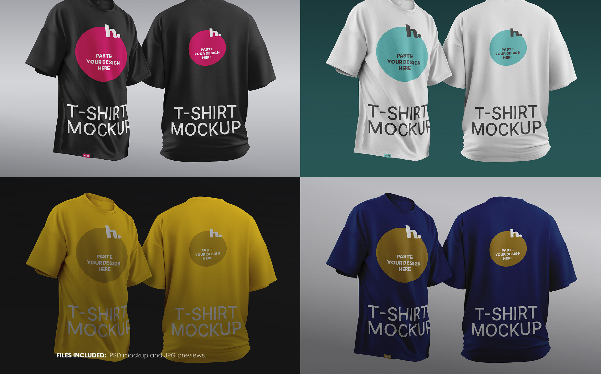 T-shirts Mockup PSD - Two Realistic T-shirts on the Editable Background vol003 Product Mockup