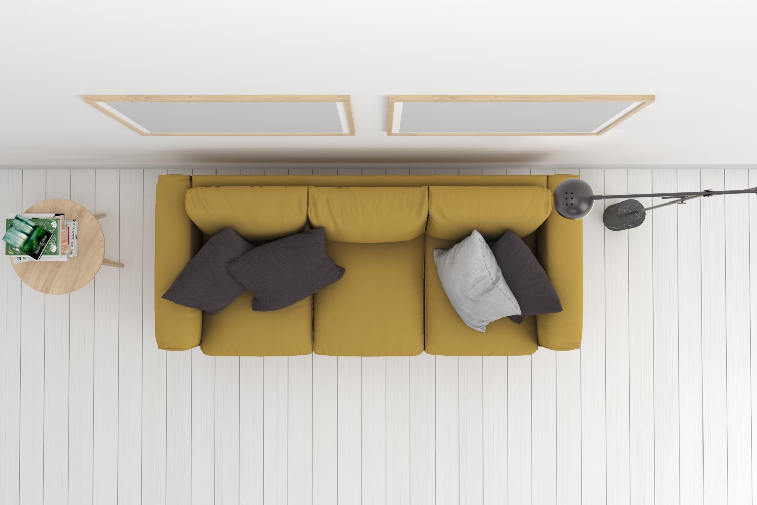 Top View Living Room Yellow Sofa 3 Product Mockup