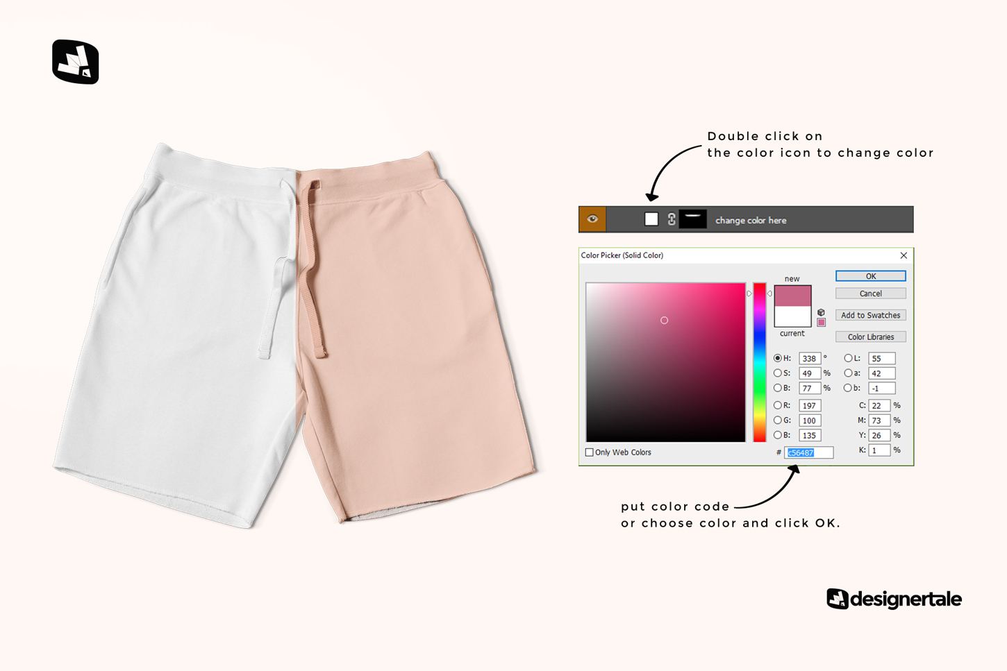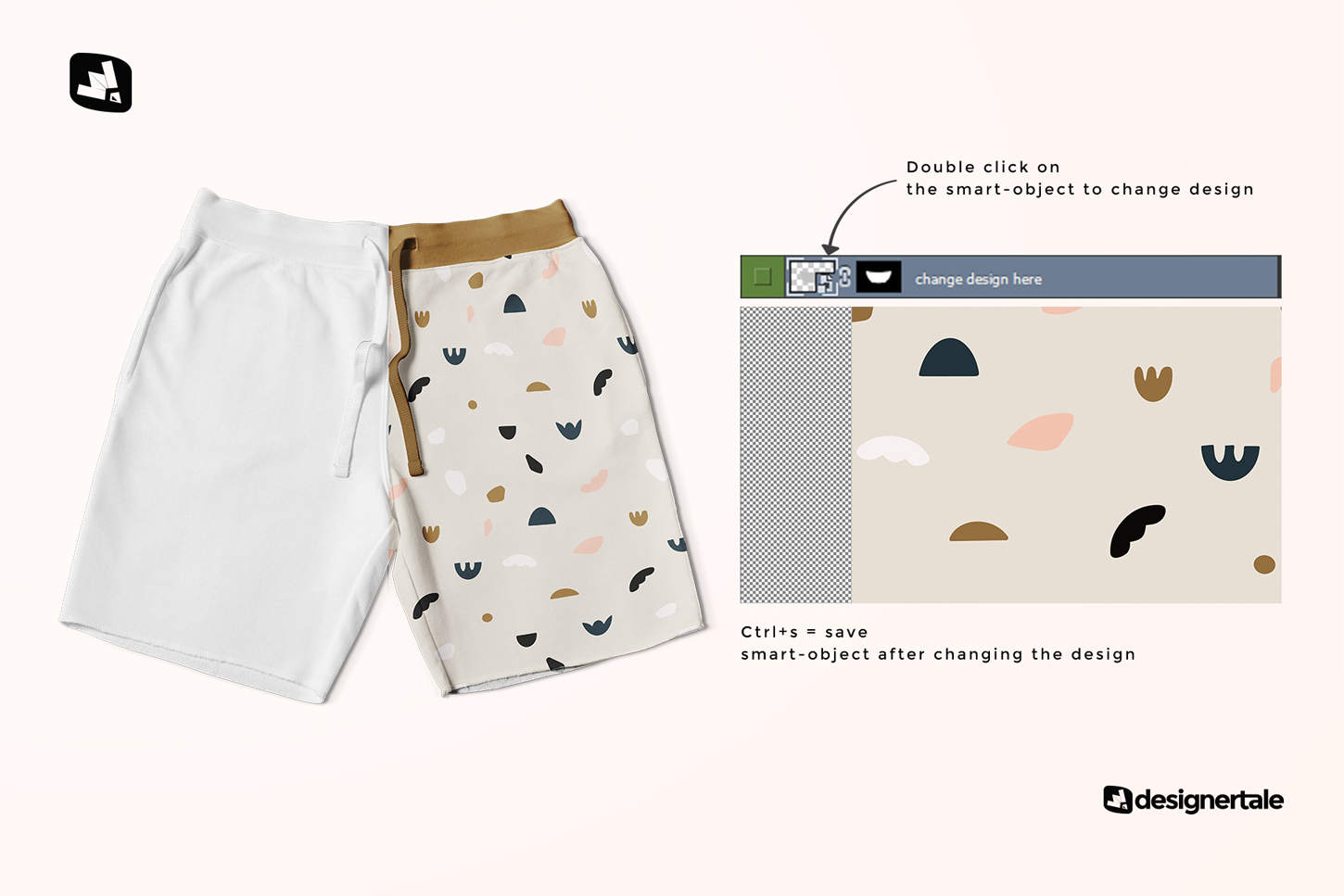 Shorts are summer essentials. This top view cotton shorts mockup is a perfect way to showcase any summer patterns. This top view cotton shorts mockup comes with both front and back PSD files; which provides a complete package with which you can be multifunctional and professional. The shorts mockup is a top view and has photorealistic effects. The high-resolution base image and a detailed guide video makes this short pants mockup a great collective item.