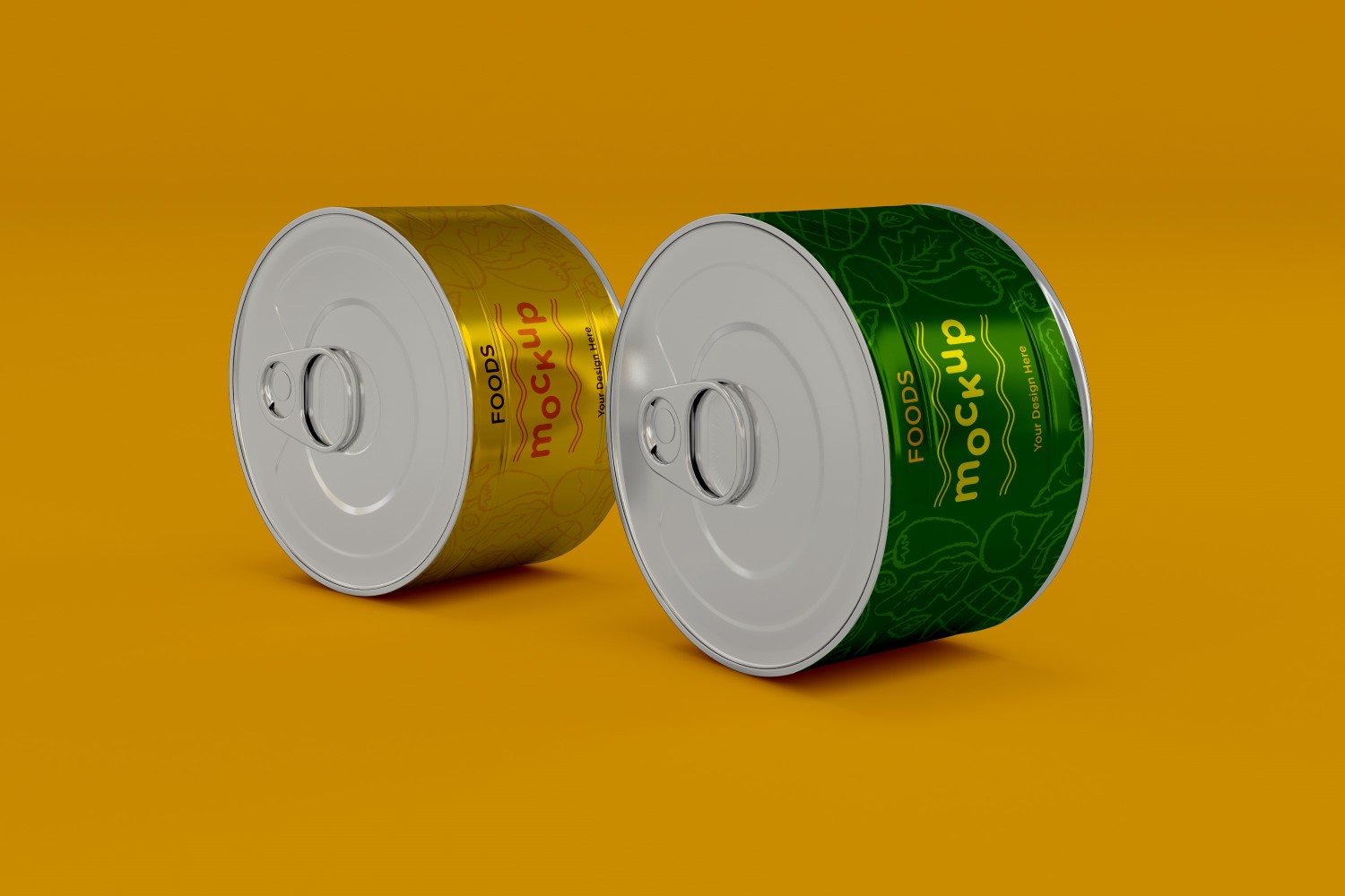Two Metal Food Tin Packaging Mockup 07 Product Mockup