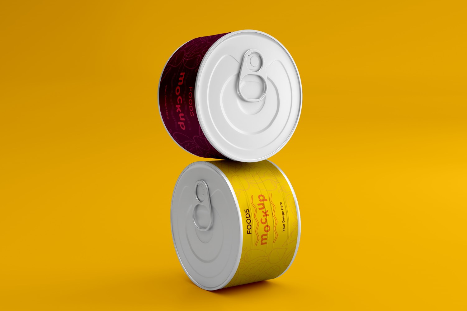 Two Metal Food Tin Packaging Mockup 08 Product Mockup