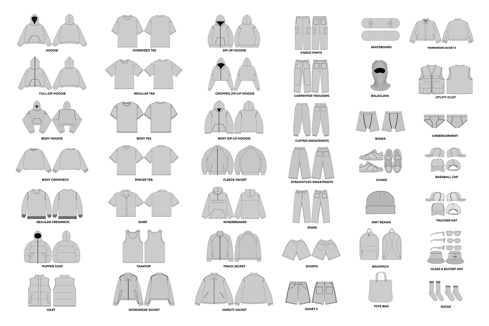 With our vector mockup bundle, you're stepping into a world where creativity knows no bounds. Crafted for designers, fashion brands, and trendsetters, this collection is your secret weapon for creating streetwear apparel mockups that resonate with authenticity.