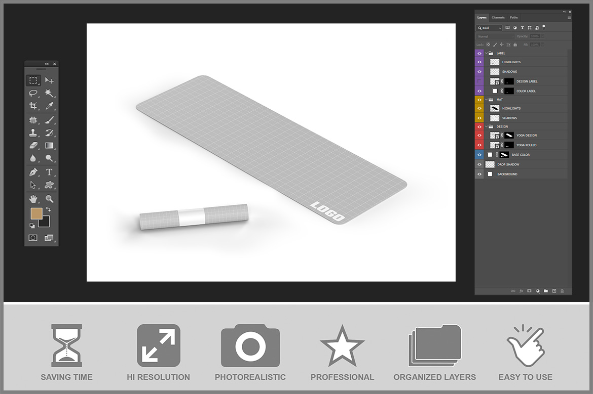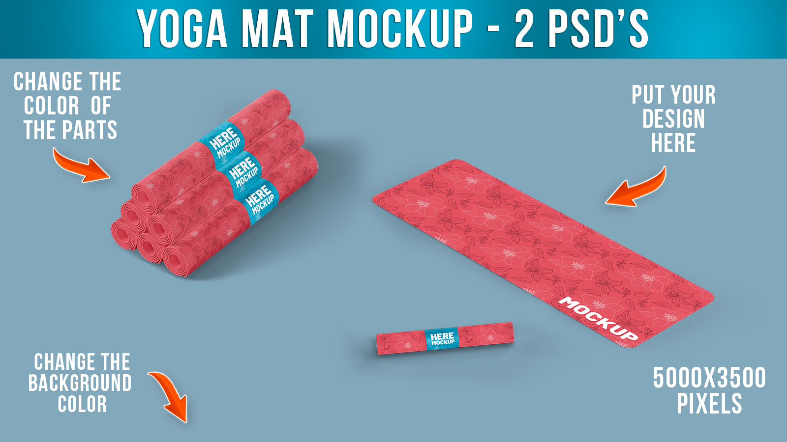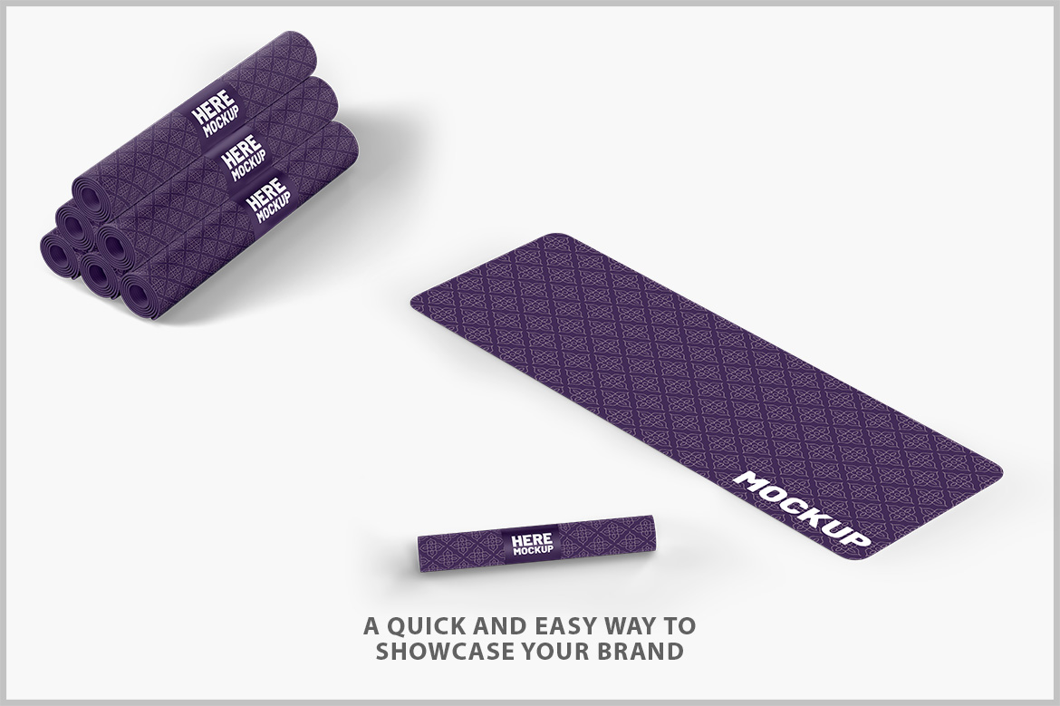 Yoga mat mockup open and rolled up lets you quickly apply your designs using layers, masks, and smart objects.
