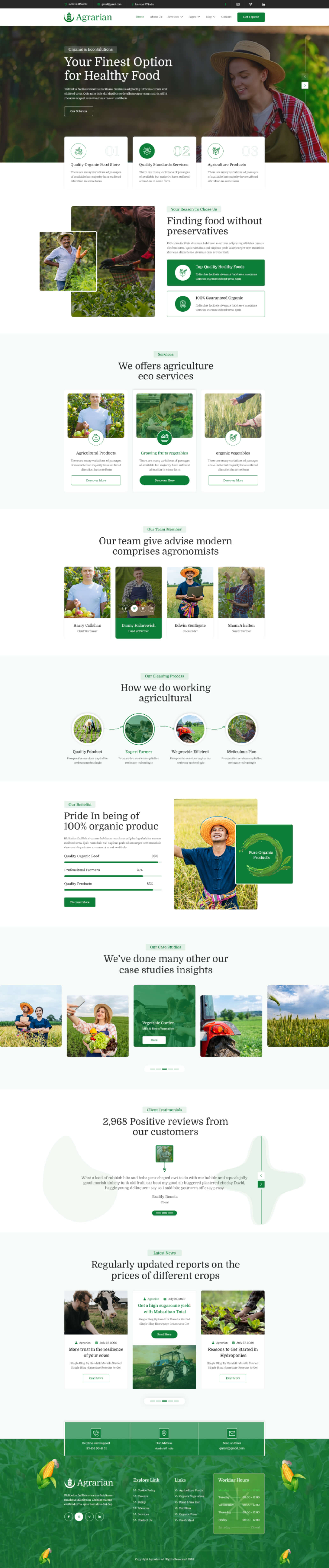 Agrarian – Agriculture & Organic Farm PSD Template. clean, pixel perfect and modern design. Are you looking for an ideal PSD template for the website of your Agriculture Business? Agrarian is the right choice for you. It is perfect for a Agriculture business website. Since it is 100% customizable, you can edit this template HTML, WordPress, Joomla and any other platform you like.