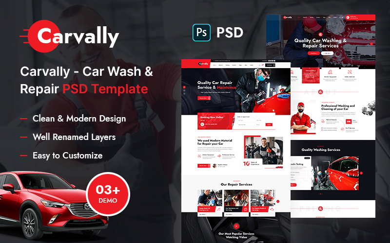 Car Wash Psd template designed specifically for Car Wash, Auto Detailing, Automobile Washing, Auto Care, Auto Decoration, Auto Mechanic, Car Repair Services, Autopsy, Garages, Mechanic Workshops, Auto Painting, Auto Centers, Serviceman, Handyman and other Auto and Car related services websites and it is suitable for any kind of small business activity.