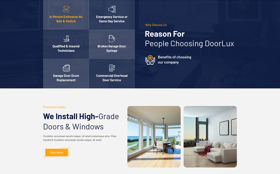 DoorLux is a professionally designed PSD template tailored for door repair and installation businesses. Whether you’re running a door repair service, a door installation company, or offering maintenance solutions, DoorLux provides a clean, modern, and fully customizable layout to create a strong online presence.