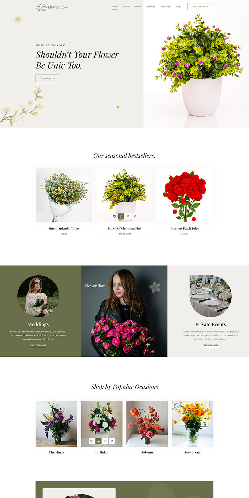 Flower Flow is a beautifully designed PSD template tailored for flower shops, florists, and online bouquet stores. With an elegant and visually appealing layout, this template is perfect for showcasing floral arrangements, special offers, and seamless online shopping experiences.