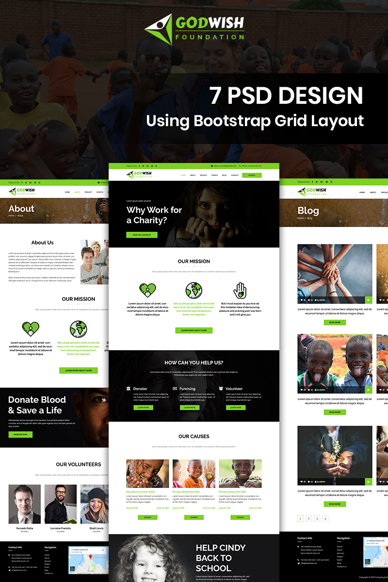 If you are looking for an ideal PSD template for the website of Charity, Godwish is the right choice for you. It is perfect for the website of Charity. Since it is 100% customizable so you can edit this template as per your choice. Here, you will find a number of shapes and all of these shapes are resizable and removable. You can convert it into HTML, WordPress and any other platform you like.