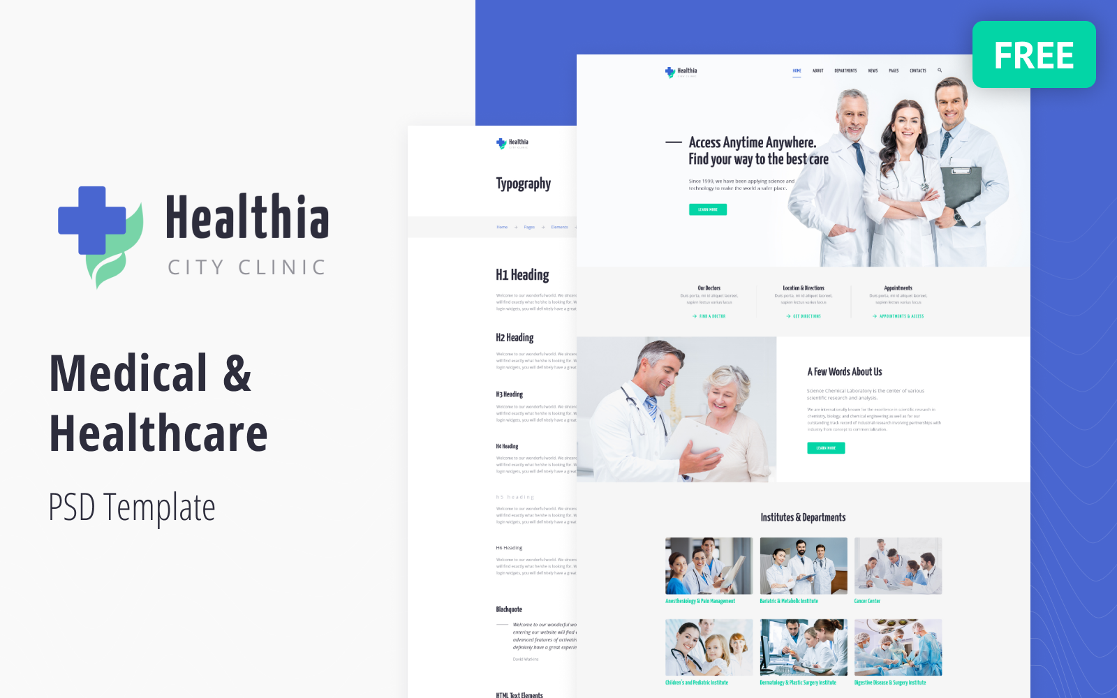 Healthia - Medical & Healthcare Clean Multipage Free PSD Template