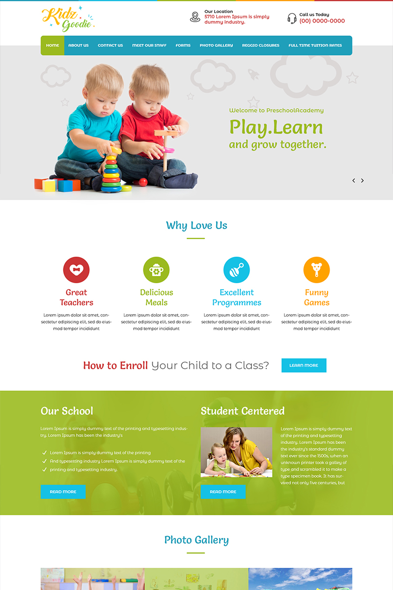 Kidz Goodie is a simple and easy to use template for Kindergarten School