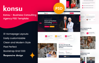 Konsu is a Business Consulting Agency PSD Template Which is a clean, modern and Trendy template. Konsu is based on in-depth research into Business, Agency, Consultancy, Corporate, Small Business and any types of IT Firm to deliver all needed layouts and blocks.Company.This template comes with a 01 unique Demo and included The Template is based on an 1320 Bootstrap-based design so this Template will be 100% fluid responsive on any device You can easily replace any picture by your own one in just a few clicks.