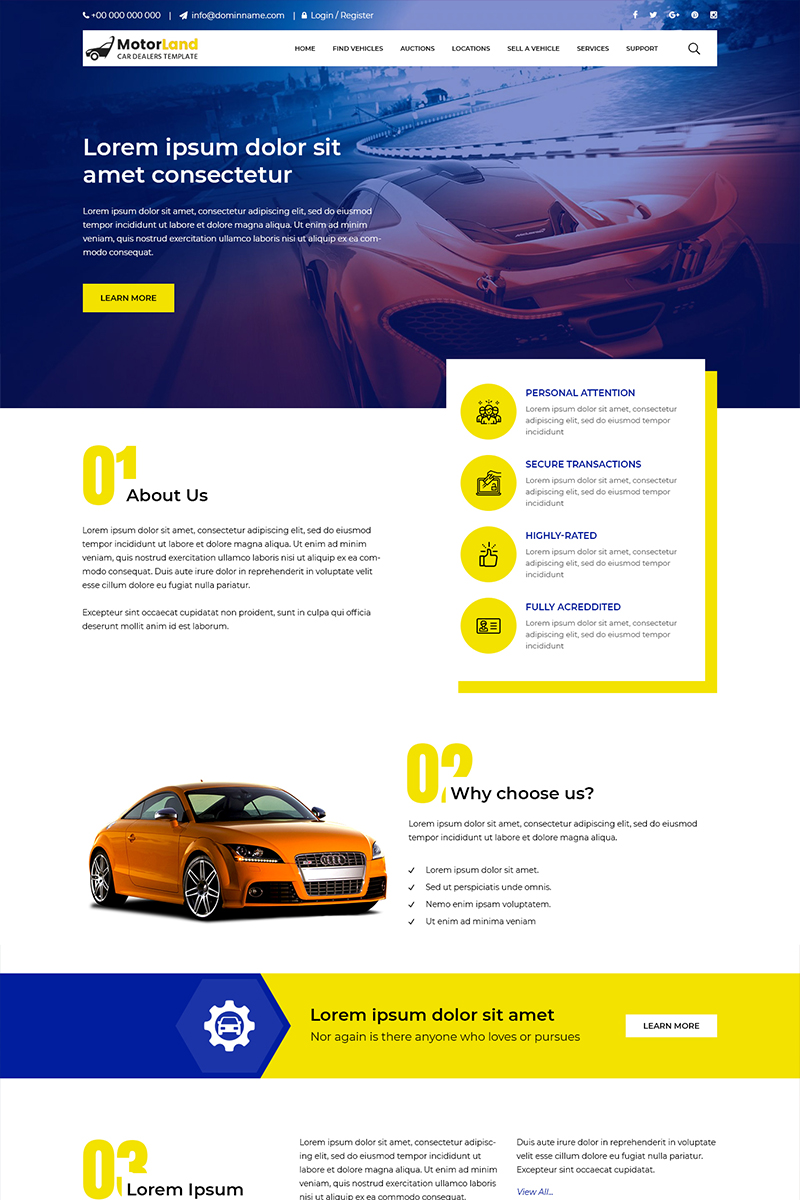 If you are looking for an ideal PSD template for the website of Car Dealer, Motorland is the right choice for you. It is perfect for Car Dealer. Since it is 100% customizable so you can edit this template as per your choice. Here, you will find a number of shapes and all of these shapes are resizable and removable. You can convert it into HTML, WordPress and any other platform you like.
