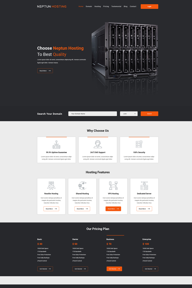Neptun Hosting is a PSD Template created for a hosting business. Designed with a modern, simple and clean PSD template. PSD files are designed with full layers and very easy to customize based on your style. All elements are grouped carefully so you can search quickly through the group name.