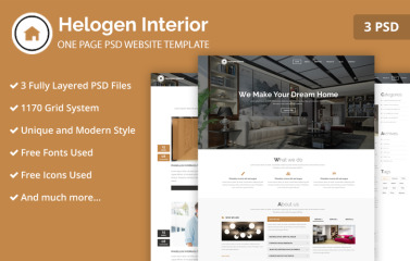 One Page Interior PSD Website Template is a high quality premium PSD Template that have clean and professional user interface(UI) with different colour schemes. All layers are properly named and grouped which helps in easy customization. One Page Interior PSD Website Template is based on 1170 Bootstrap based design which makes it easier to convert this PSD Website Template into responsive HTML.