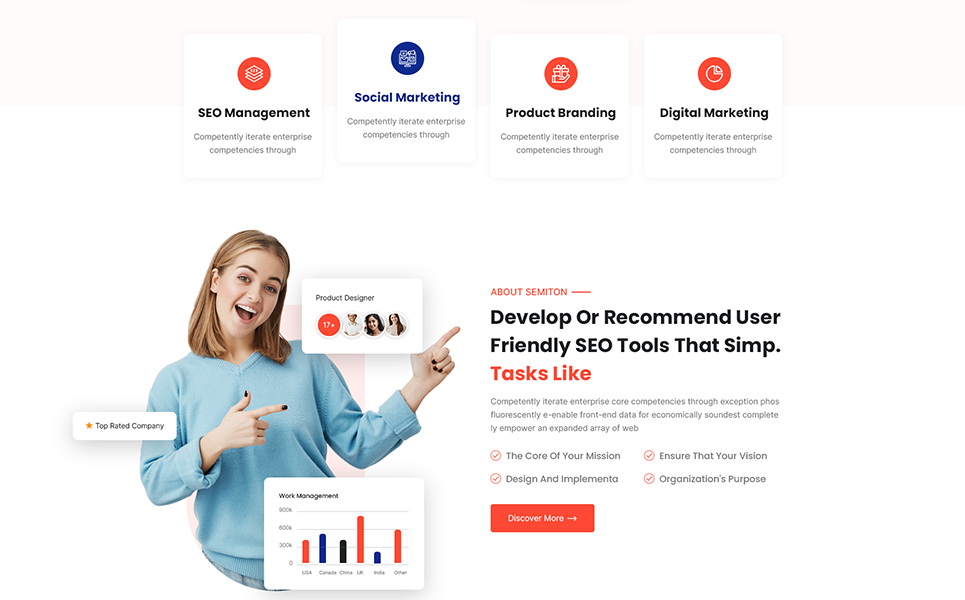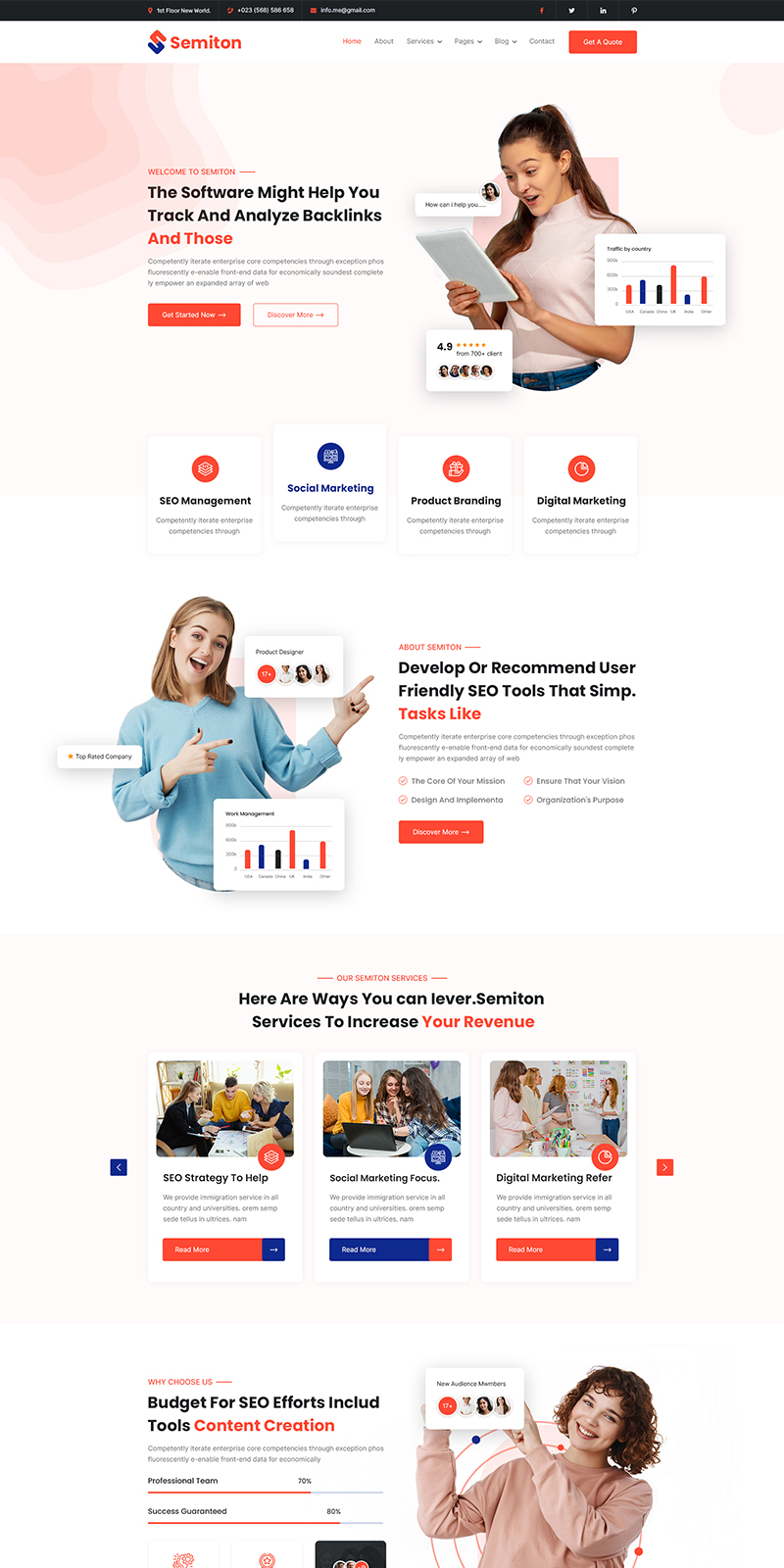 Semiton is a cutting-edge PSD template designed for SEO agencies, digital marketing firms, and online business consultants. With a sleek and modern layout, Semiton offers a professional online presence that helps businesses showcase their services, case studies, and expertise effectively.
