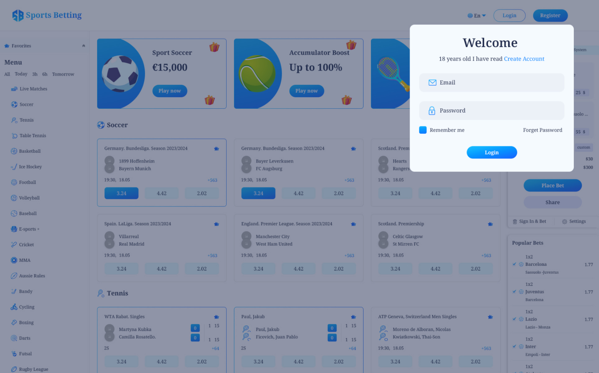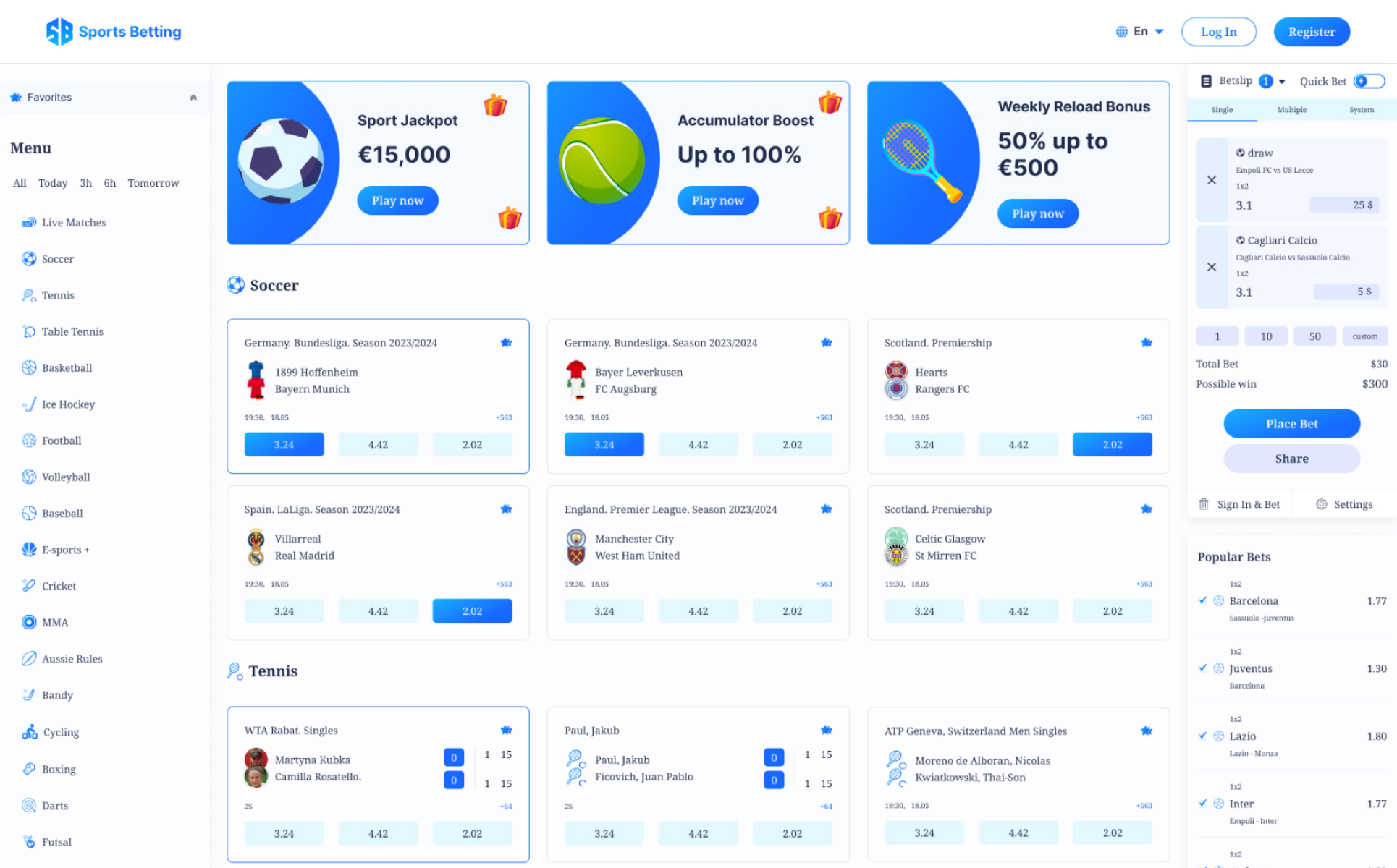 The Sports Betting template contains a number of features and functions that are intended to improve the user experience. It offers a wide range of sports and events for users to wager on, as well as real-time odds and betting possibilities. In addition, the design provides live scores and results, as well as news and updates on the most recent athletic events.
