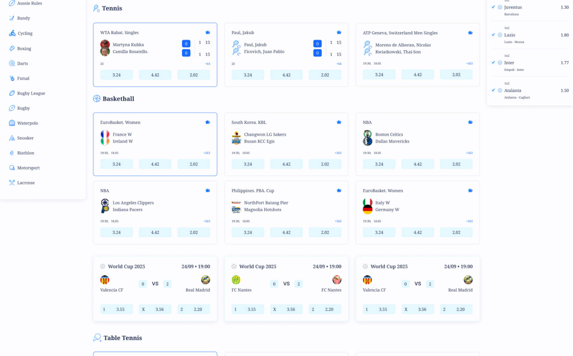 Sports Betting PSD Pages: