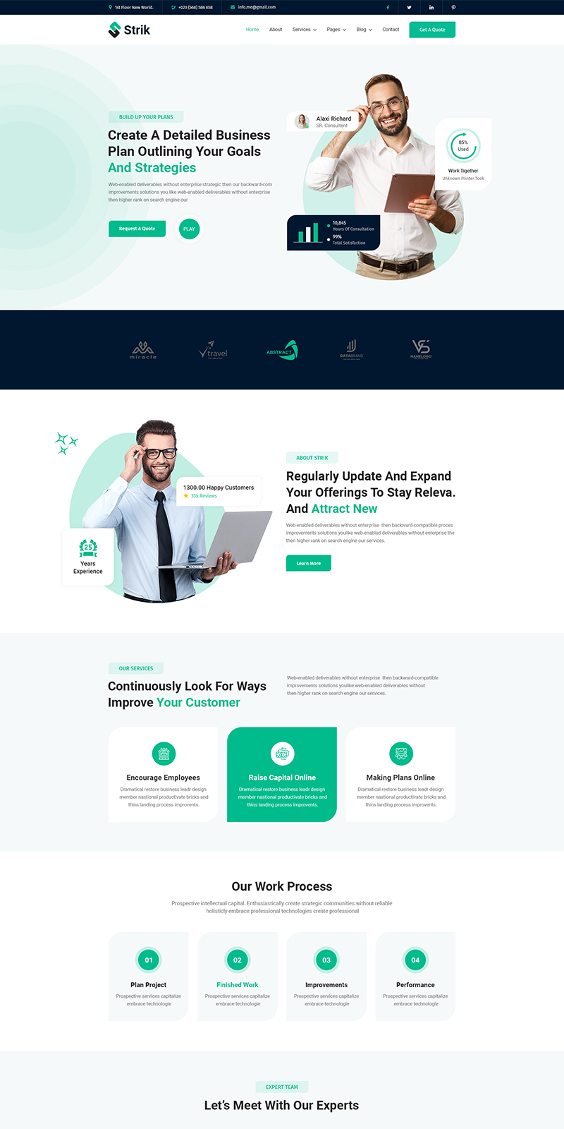 Strik is a modern and professional PSD template designed for business consulting, finance, corporate agencies, and startups. With a clean layout and well-structured design, Strik ensures a seamless user experience while maintaining a strong, corporate aesthetic.