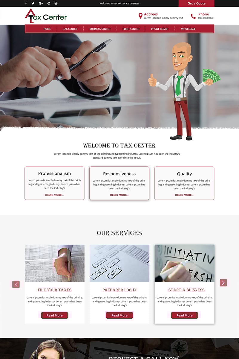 Tax Center is a simple and easy to use template for Tax Consultation Company