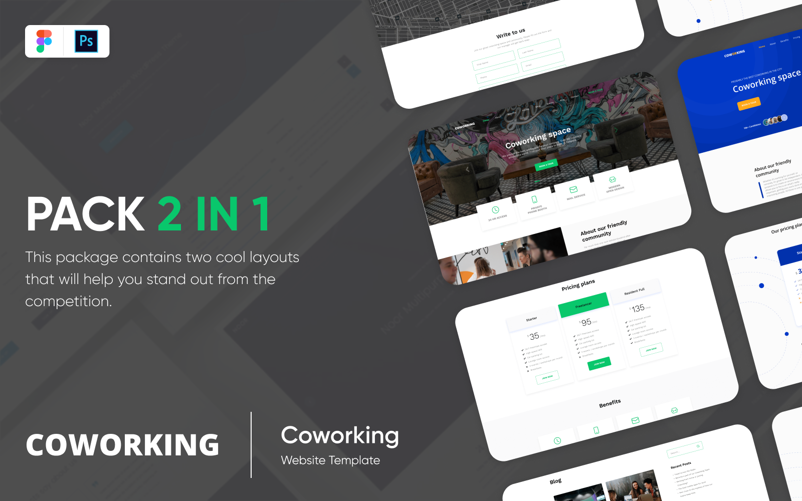 Design Site Coworing this is a beautiful multipage design for your coworking site. It has all the functionality you might need. All pages are made in a unique and beautiful design that is easy to customize and change according to the direction of business that you need.