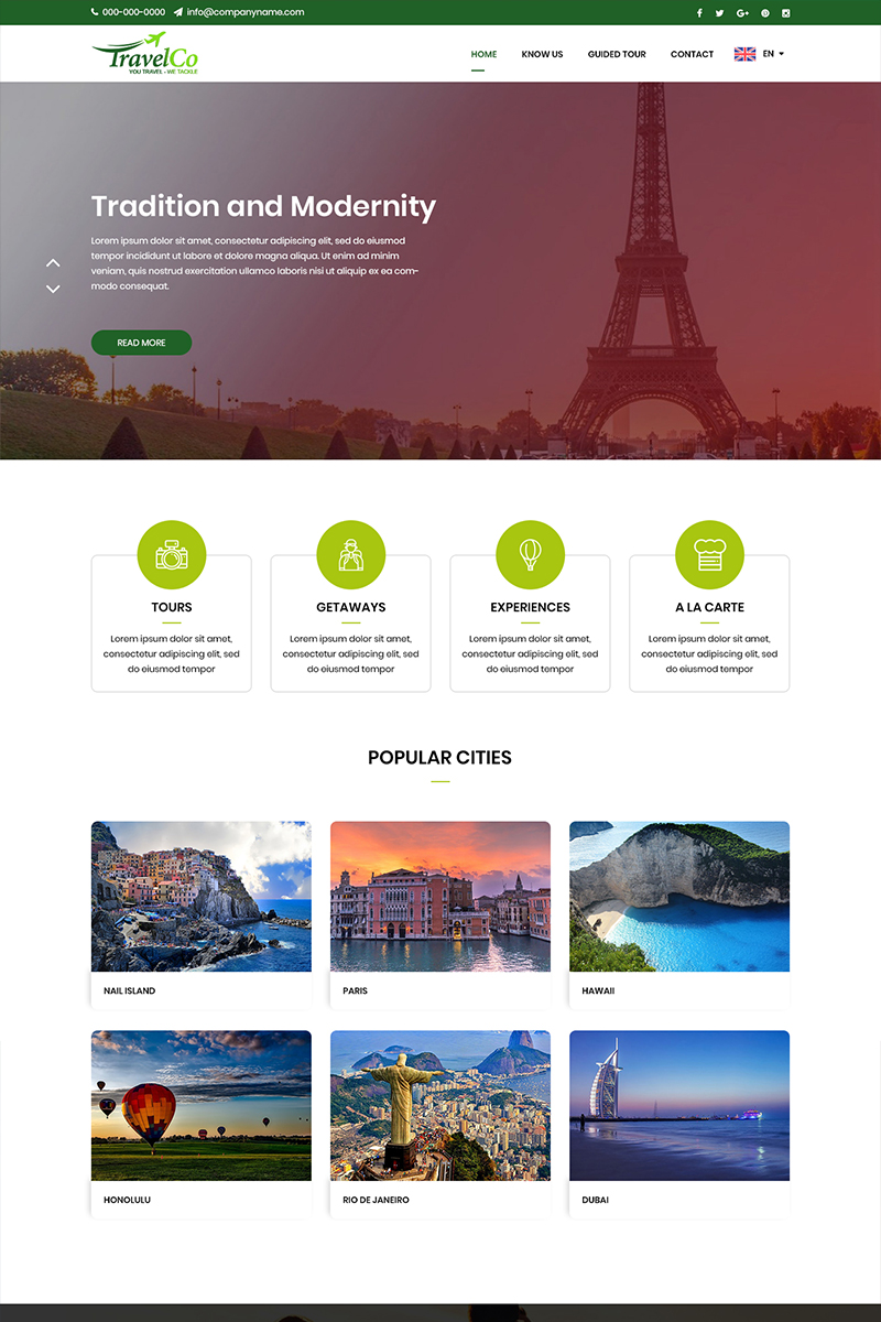 If you are looking for an ideal PSD template for the website of Travel Company, Travel Co is the right choice for you. It is perfect for the website of Travel Company. Since it is 100% customizable so you can edit this template as per your choice. Here, you will find a number of shapes and all of these shapes are resizable and removable. You can convert it into HTML, WordPress and any other platform you like.