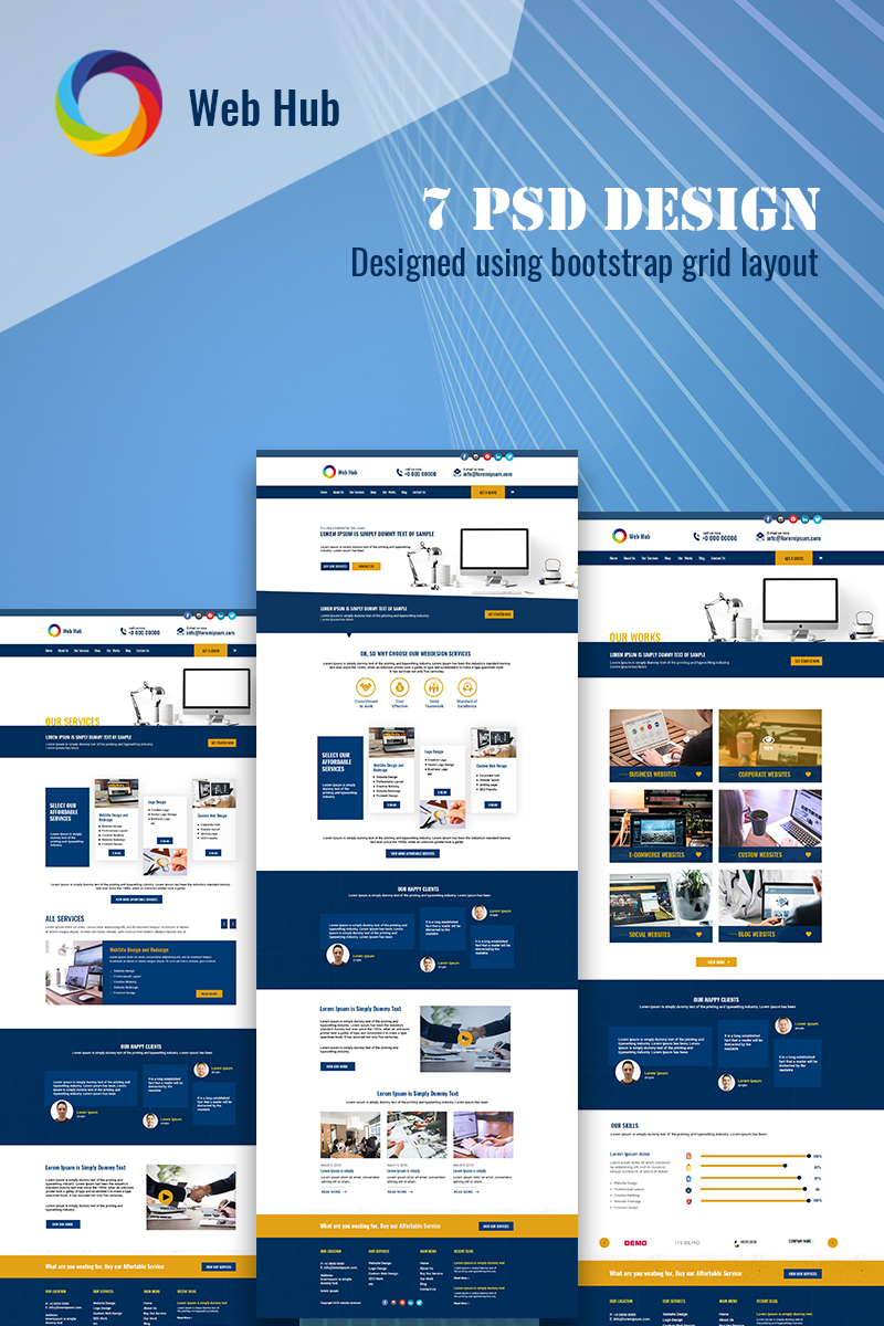 If you are looking for an ideal PSD template for the website of Web Design Website, WebHub is the right choice for you. It is perfect for all kinds of Web Design website. Since it is 100% customizable so you can edit this template as per your choice. Here, you will find a number of shapes and all of these shapes are resizable and removable. You can convert it into HTML, WordPress and any other platform you like.