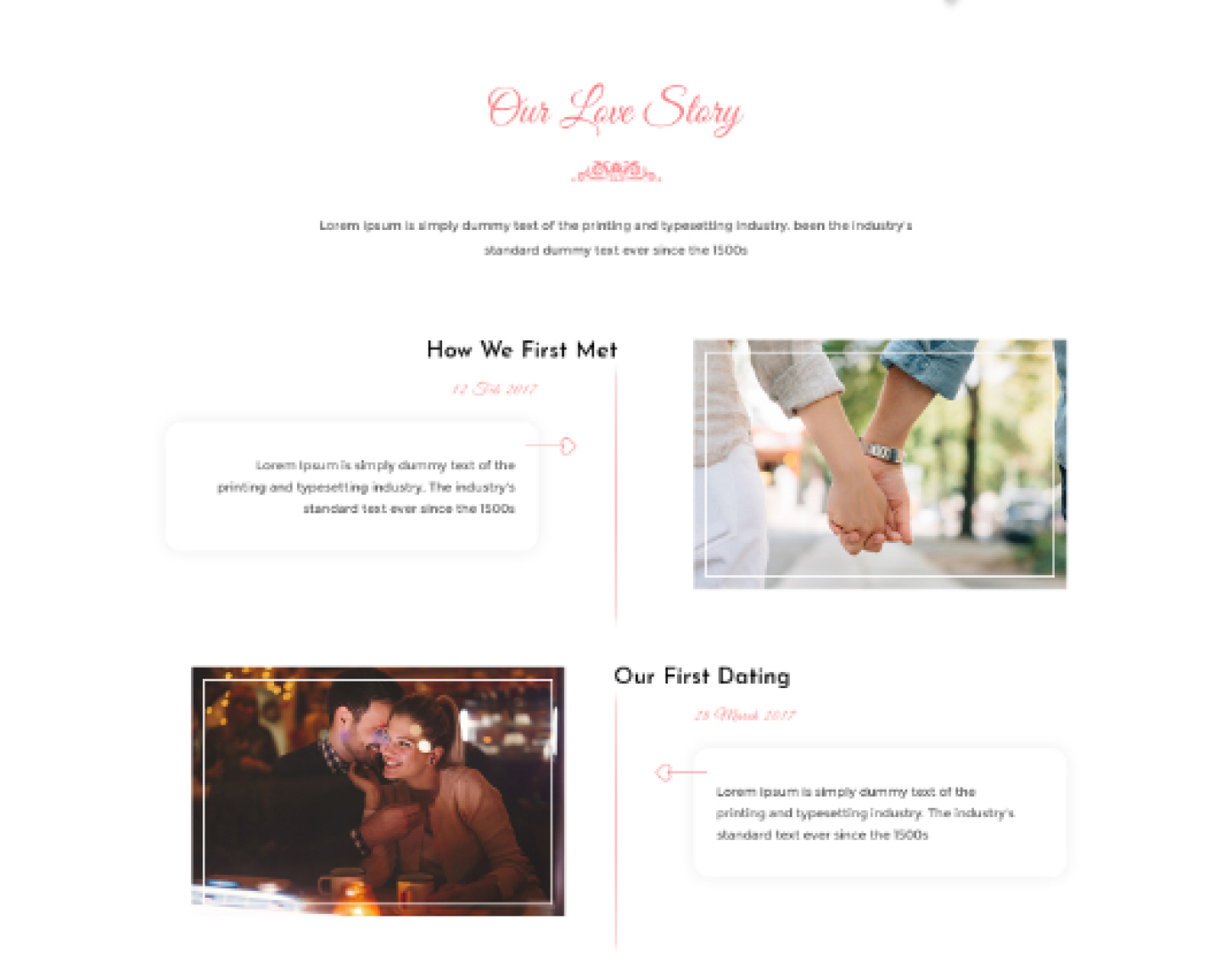 Wedding - Couple Love and Marriage Invitation Website Template is a beautiful looking PSD template to showcase your marriage journey and an invitation to your guests in a creative manner.