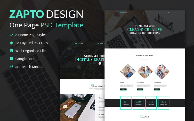 Zapto Design One Page Creative Business PSD Template is a unique and meticulously crafted design resource built for professionals who need a solid starting point for their creative projects. This template is structured in PSD format, providing full customization control with well documented layers, smart object integration, and pixel perfect design elements. It is ideal for agencies, freelancers, startups, and businesses looking to establish a strong visual identity without spending excessive time on foundational design work.