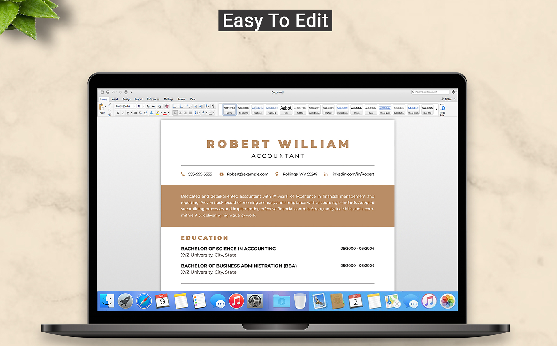 - Open the template in **Word, Pages, Google Docs, or Illustrator** and replace my "dummy" text with your resume content