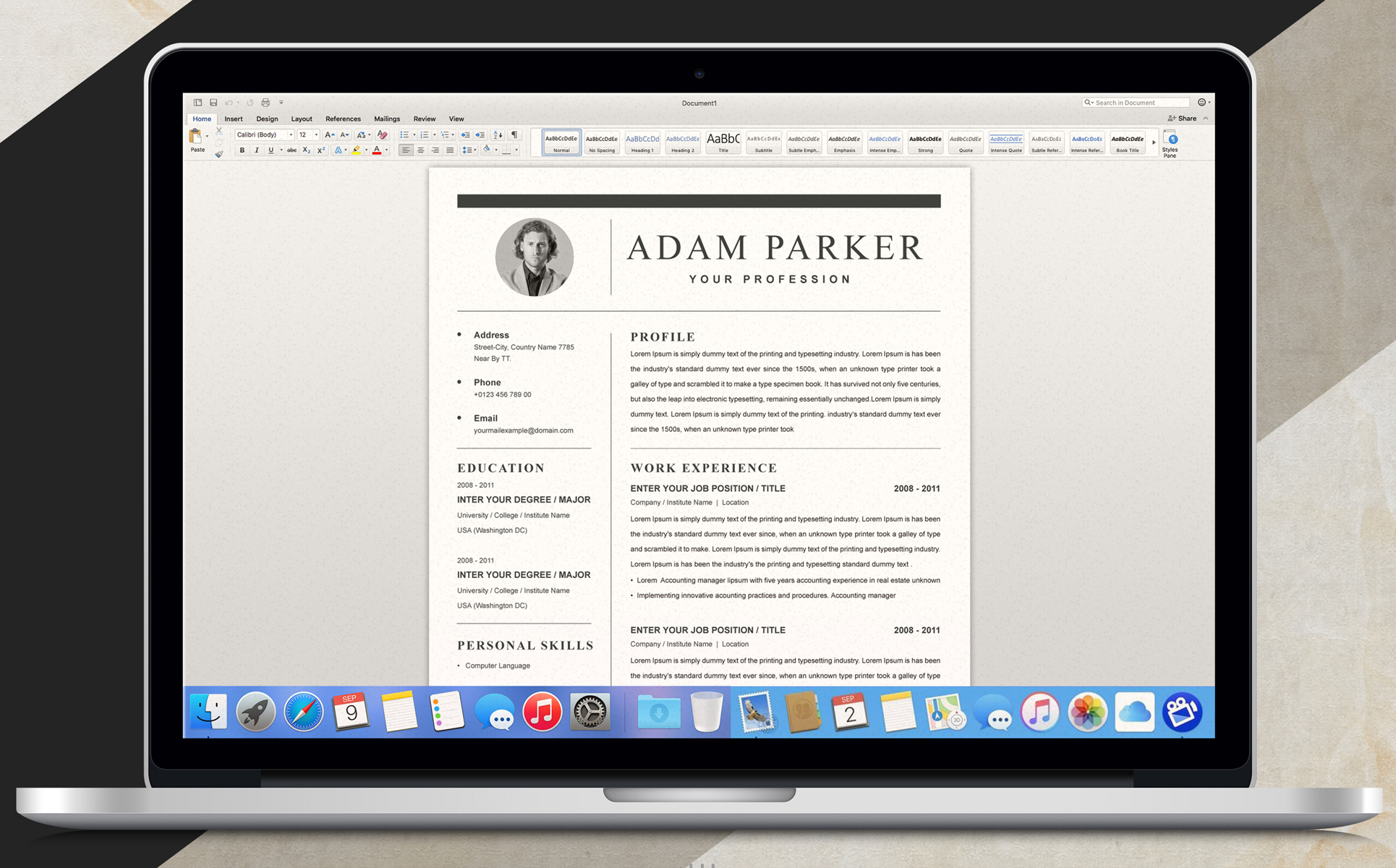 - Open the template in **Word, Pages, Photoshop, or Illustrator** and replace my "dummy" text with your resume content