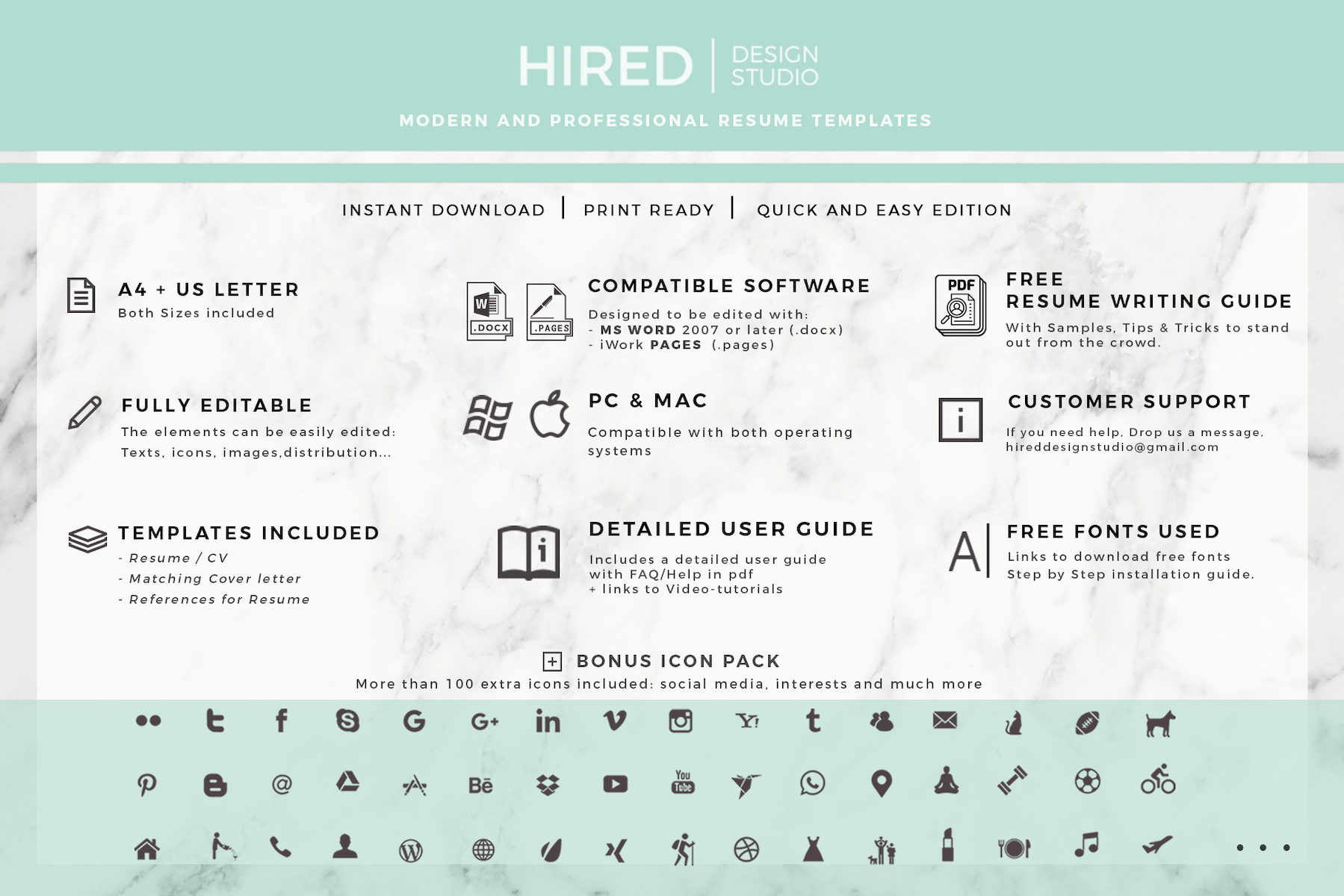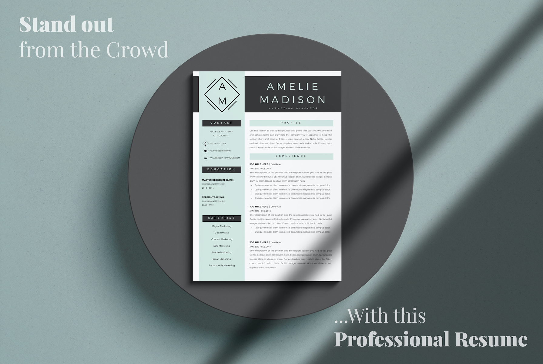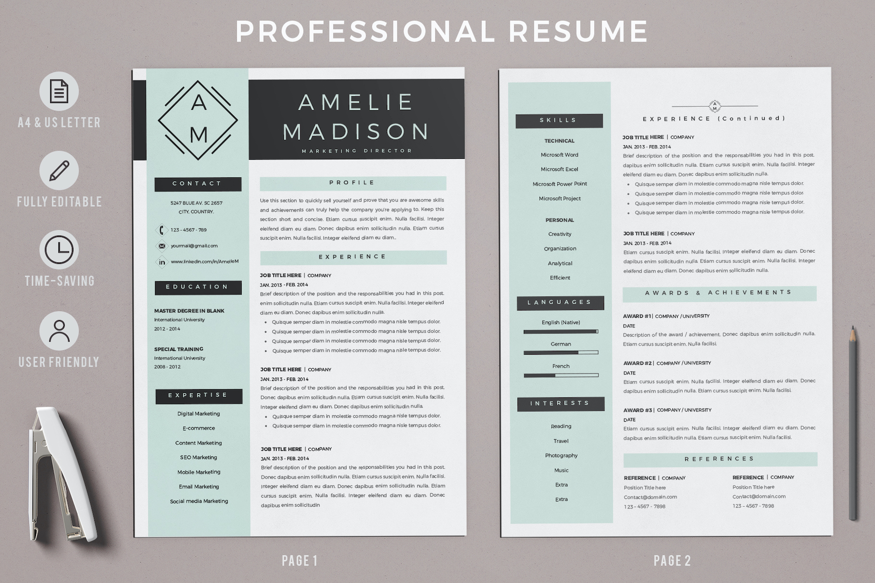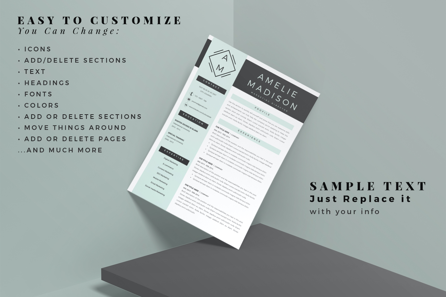 AMELIE - Marketing Resume Template for Word & Pages. CV with Logo, Cover Letter & References